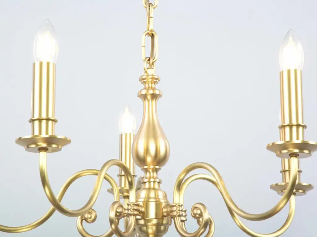 ROTTERDAM 5 ARMED CHANDELIER is a brass chandelier from the ROTTERDAM collection by Patinas Lighting.Finish: antique, polished brass, matte brass, polished nickel, matte nickelLight source: 5 x 60W E14Material: brass