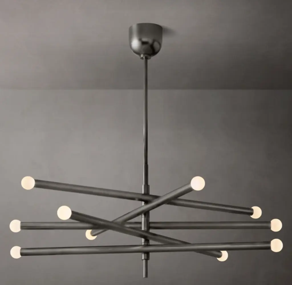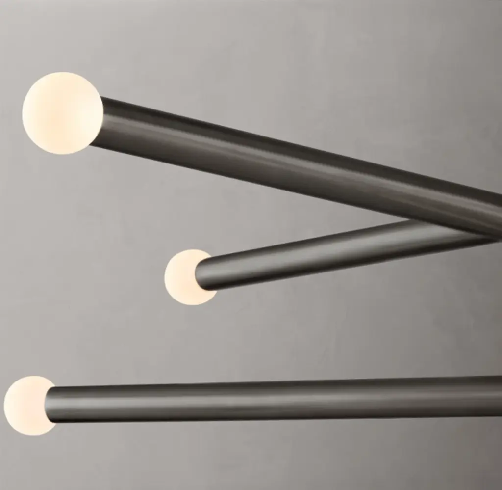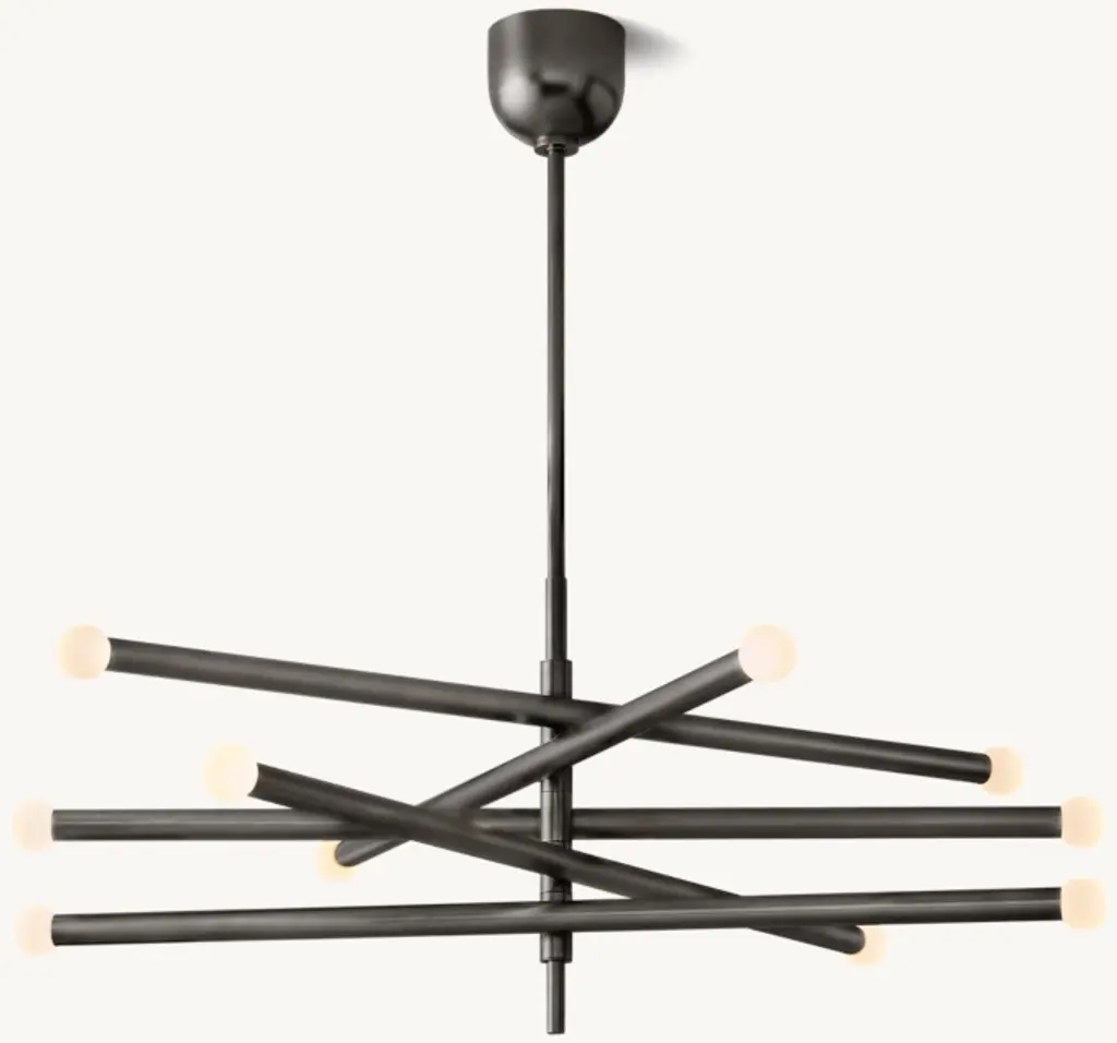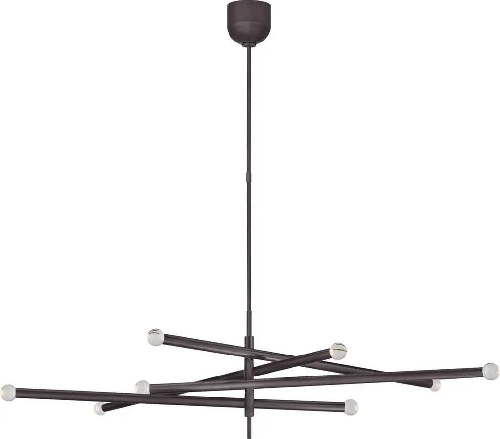 Inspired by minimalist midcentury Italian design, our contemporary interpretation of the chandelier offers reductionist form in a striking silhouette. Each end of Rousseau's slender arms bears an etched glass orb fitted with an integrated LED bulb. When lit, the fixture emits a warm, filtered glow.SHOP THE ENTIRE COLLECTION