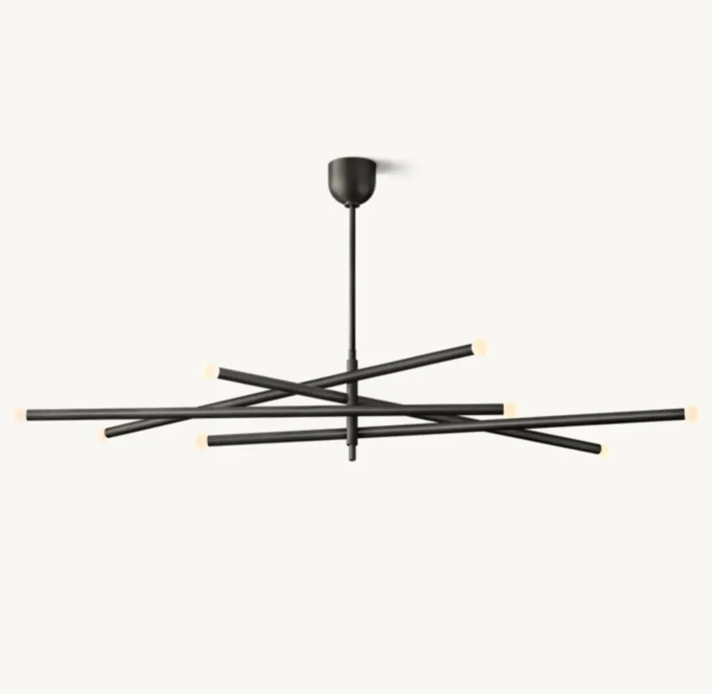Inspired by minimalist midcentury Italian design, our contemporary interpretation of the chandelier offers reductionist form in a striking silhouette. Each end of Rousseau's slender arms bears an etched glass orb fitted with an integrated LED bulb. When lit, the fixture emits a warm, filtered glow.SHOP THE ENTIRE COLLECTION
