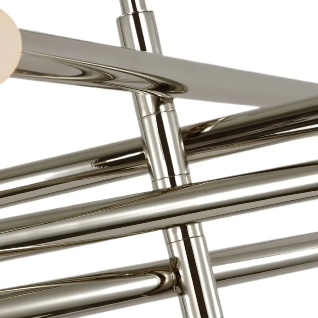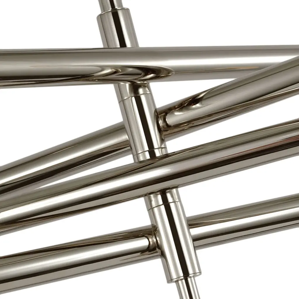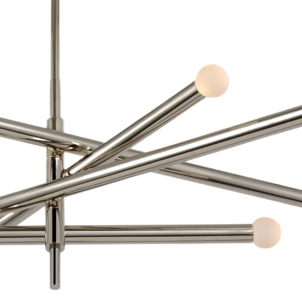 The Rousseau Grande Eight Light Articulating Chandelier is a stunning embodiment of minimalist silhouettes and modern design. Part of Kelly Wearstler's distinctive Rousseau series, this chandelier offers a versatile lighting solution that complements a variety of interiors. Its design features a harmonious blend of metal finishes paired with either etched crystal or glass orbs, creating a refined and sophisticated aesthetic. Perfect for illuminating modern spaces, this chandelier is a testament to elegant craftsmanship and timeless style.