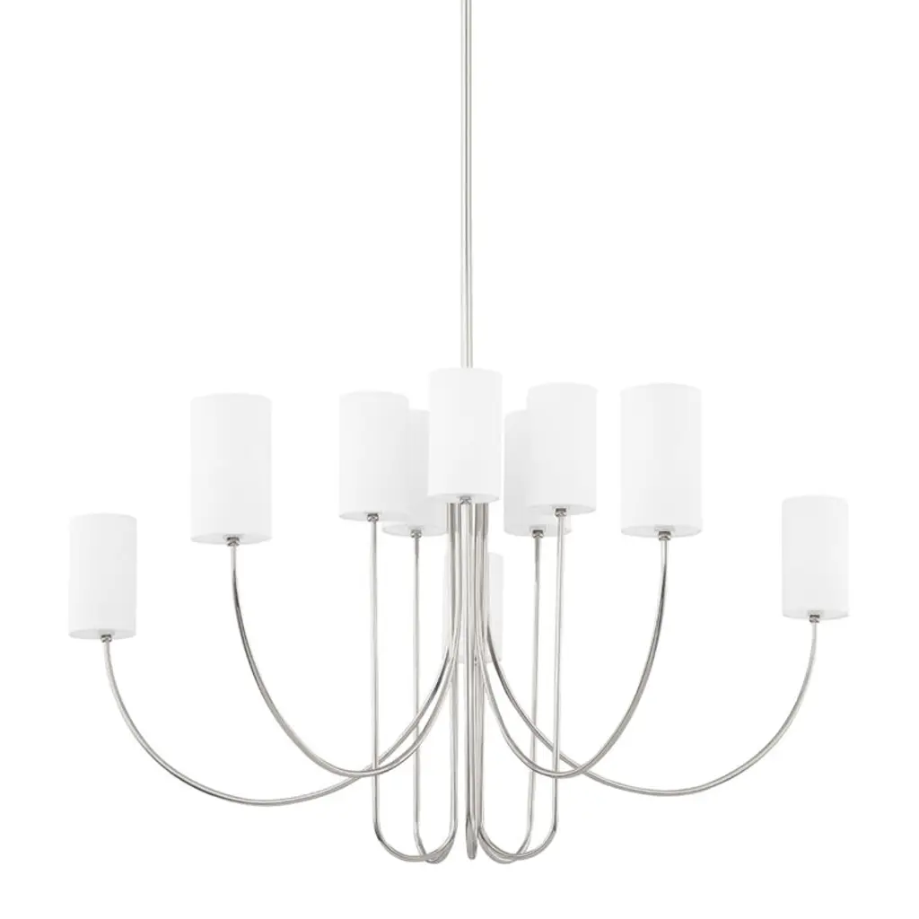 Distinct designer style. The Rousseau LED Chandelier by Visual Comfort Signature, formerly known as Visual Comfort, flows perfectly with minimalist spaces. Set apart by its curvilinear candelabra of metal tubes and cylindrical glass shades, it looks striking suspended over a contemporary dining table or seating area. This modern ceiling fixture and its mounting hardware are done in a timeless finish to complement interior décor and furnishings.
