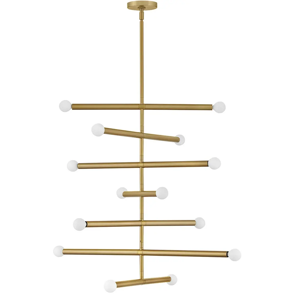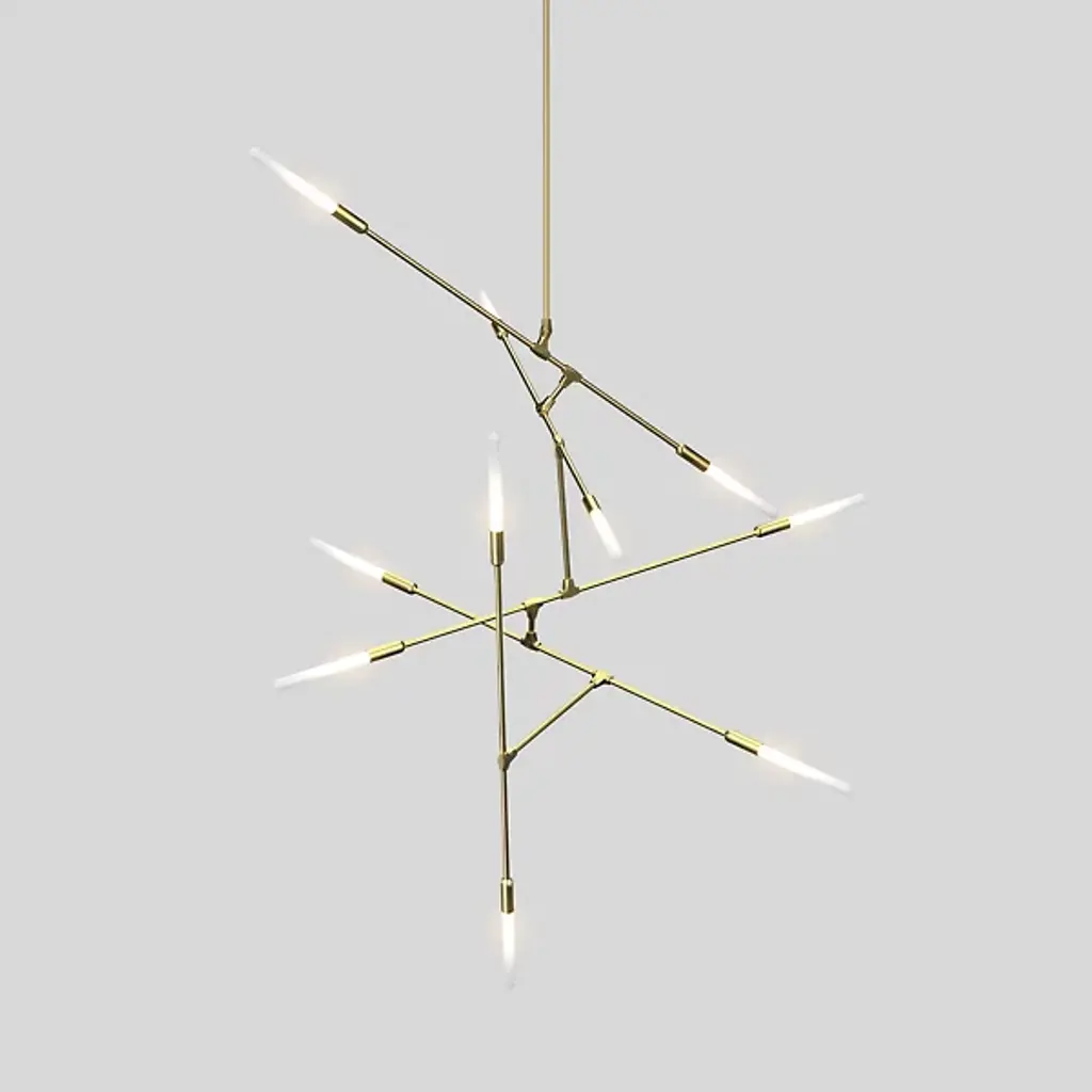 Add depth to the blank slates of your existing décor with the Rousseau LED Chandelier by Visual Comfort Signature, formerly known as Visual Comfort, A four-tier chandelier designed by Kelly Wearstler, it drops from an extended dome canopy via a single slim stem, supporting angled horizontal rods with LEDs tucked under seeded glass shades at each end. The Rousseau offers a refined mix of the sculptural with the functional, shining down with a pleasant and encompassing ambiance.