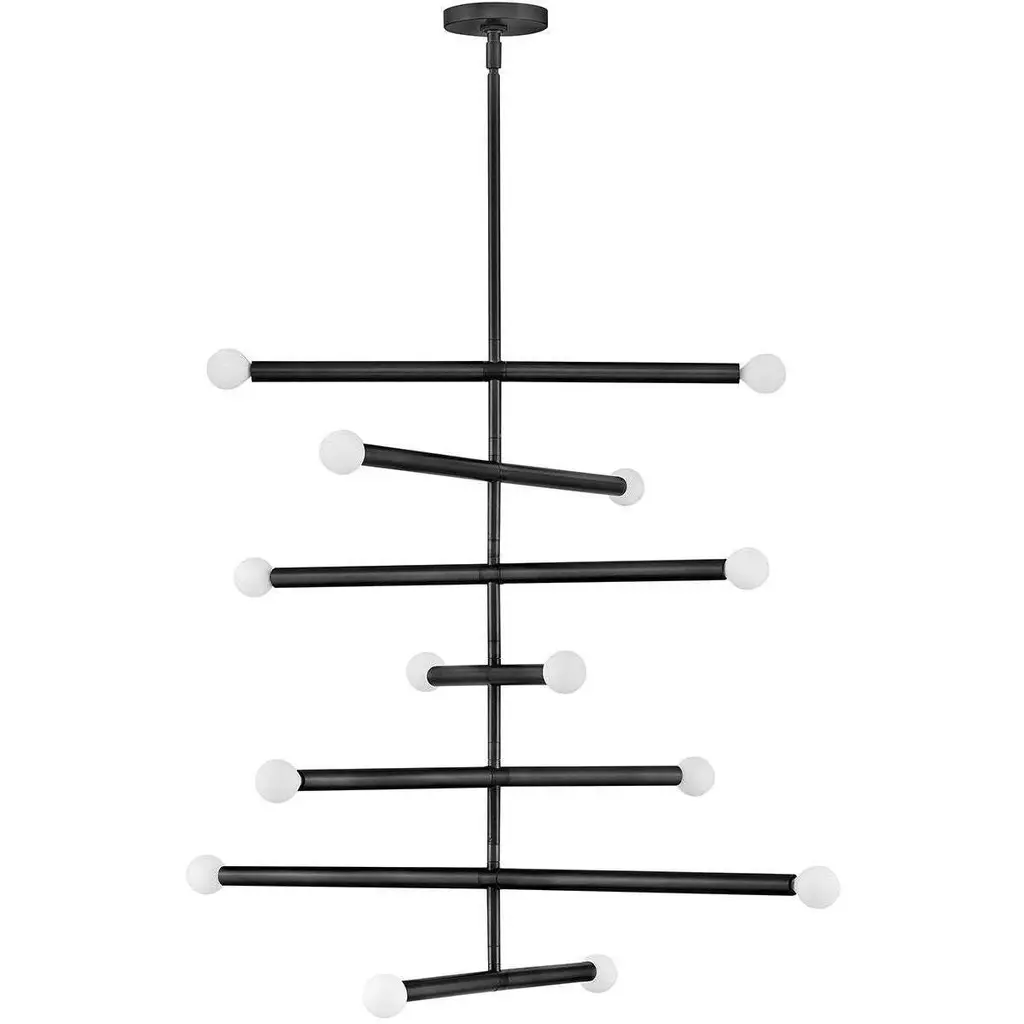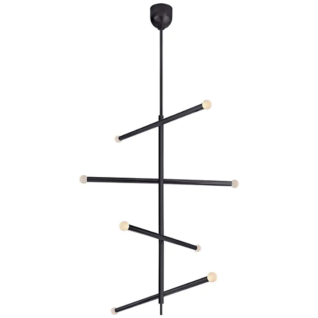 Add depth to the blank slates of your existing décor with the Rousseau LED Chandelier by Visual Comfort Signature, formerly known as Visual Comfort, A four-tier chandelier designed by Kelly Wearstler, it drops from an extended dome canopy via a single slim stem, supporting angled horizontal rods with LEDs tucked under seeded glass shades at each end. The Rousseau offers a refined mix of the sculptural with the functional, shining down with a pleasant and encompassing ambiance.