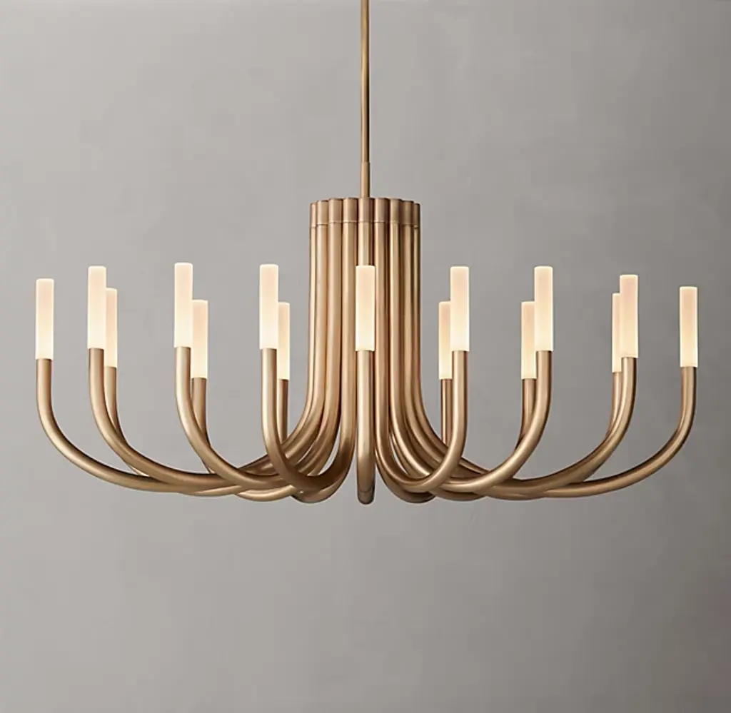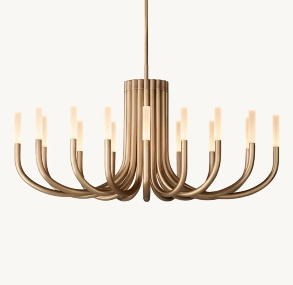 Inspired by minimalist midcentury Italian design, our contemporary interpretation of the chandelier offers reductionist form in a striking silhouette. Spare and understated, Rousseau's gracefully upraised arms hold aloft an etched glass shade fitted with an integrated LED bulb. When lit, the fixture emits a warm, filtered glow. SHOP THE ENTIRE COLLECTION