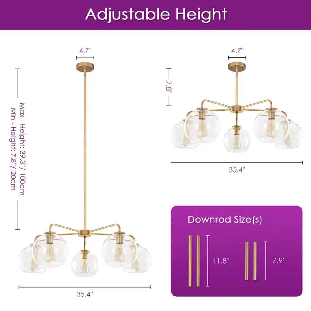 Royelle 5 - Light Sputnik Sphere Modern Glass Bubble Chandelier