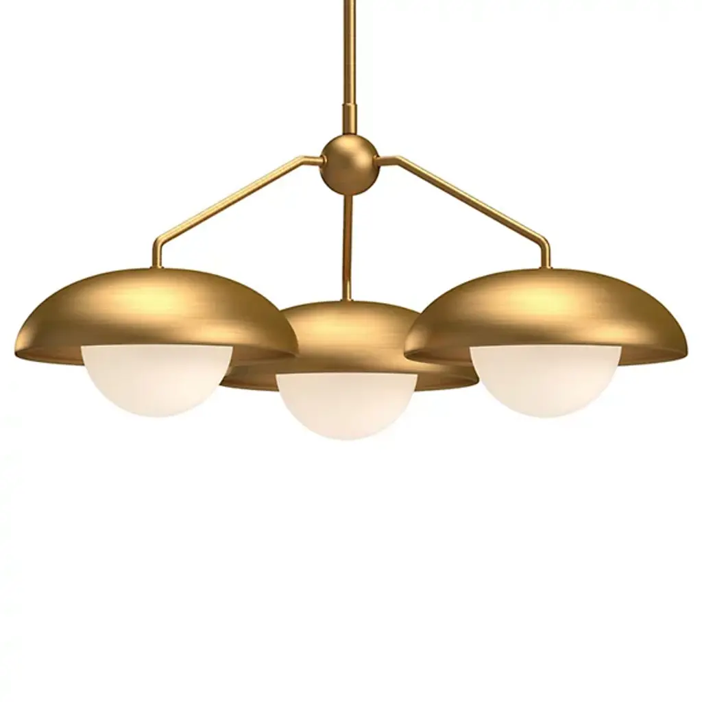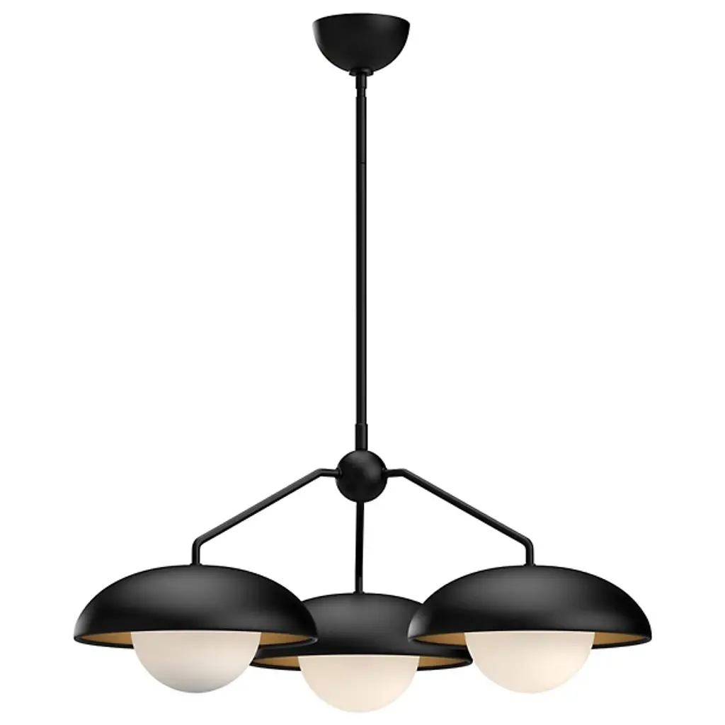 The Rubio Chandelier from Alora Mood introduces a playful yet sophisticated display to the room, one defined by smooth shapes and light. It’s easy to fall with this clean composition in the modern or contemporary home. It follows the precise angles of the home’s architecture with its linear rods. Charming saucer-shaped shades below contain the light source and opal glass diffusers that appear to float in the air. A flip of the switch produces a combined stream of radiant downlighting with glare-free qualities.
