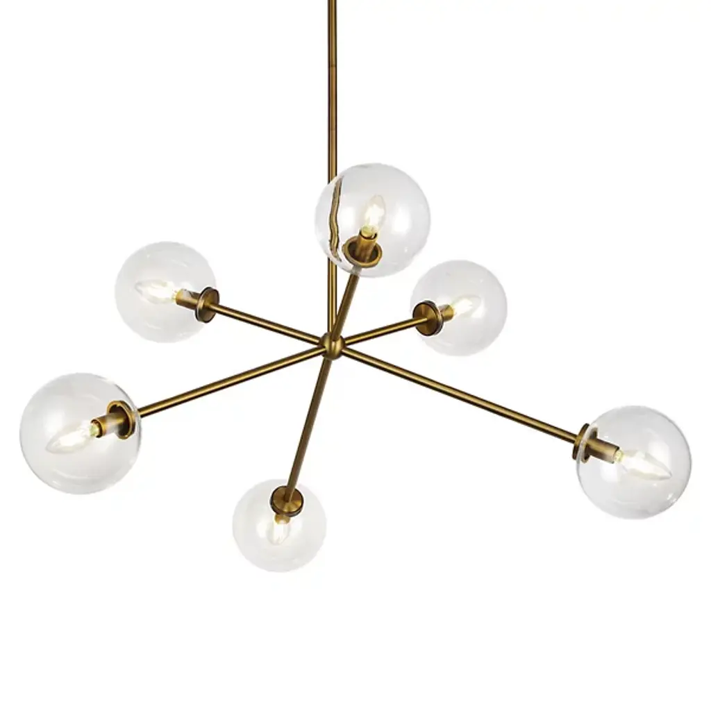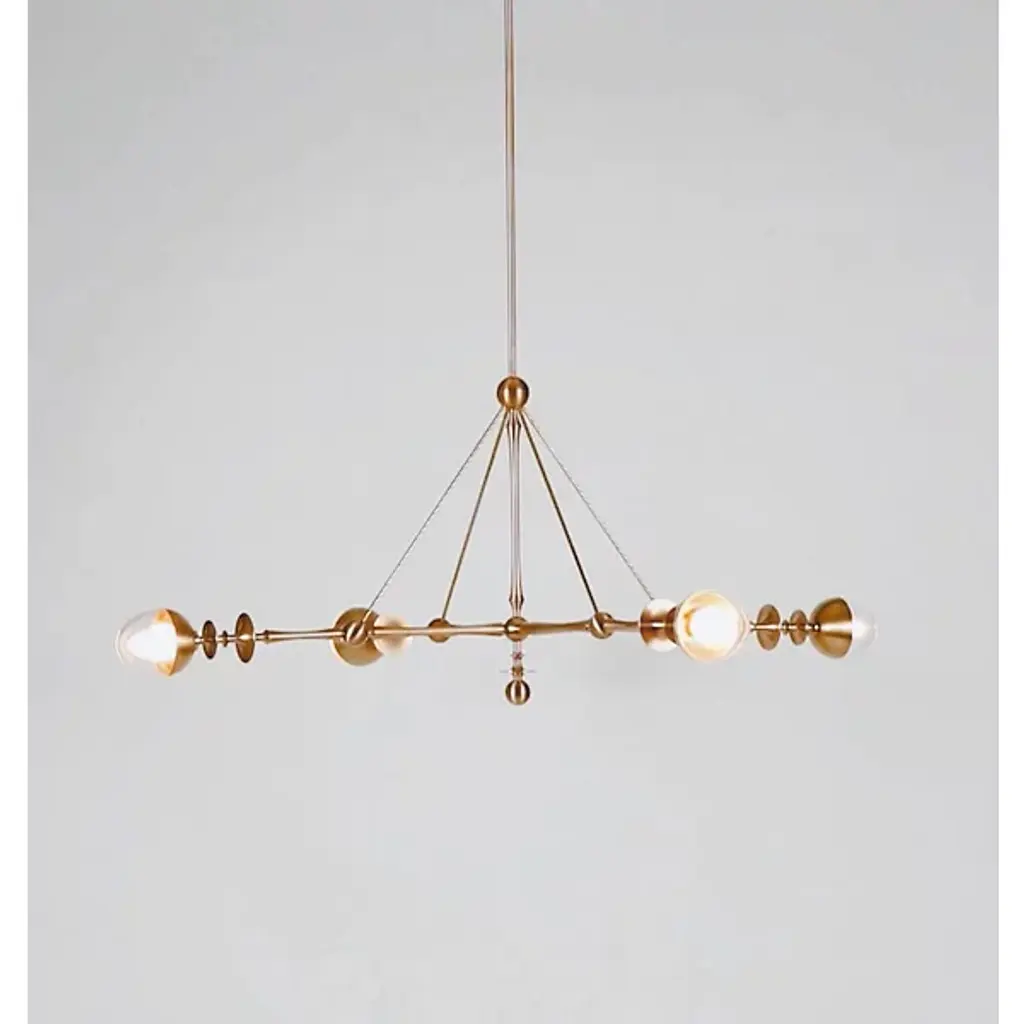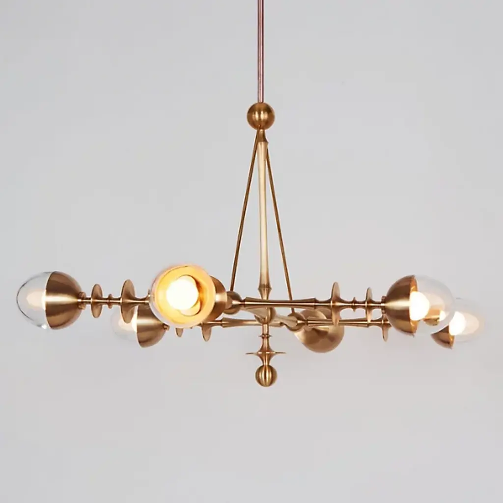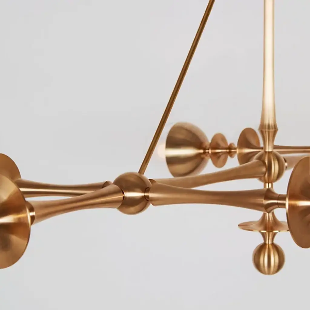 The Rue Sala LED Large Chandelier from Roll & Hill captures the feeling of summertime in Lyon, France. Designer Jessica Helgerson takes inspiration from Louis XVI furniture and bronze statuettes, creating a chandelier with Art Deco flair. It is composed of brass for durability and features shades of hand-blown glass illuminated by an integrated LED. Rue is sloped ceiling adaptable for your convenience. You can adjust the brightness level using an ELV or TRIAC dimmer.