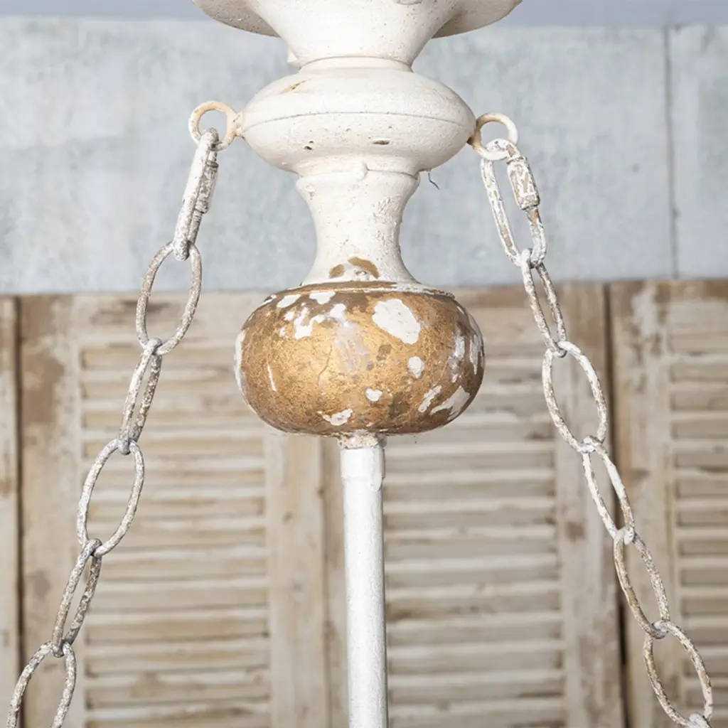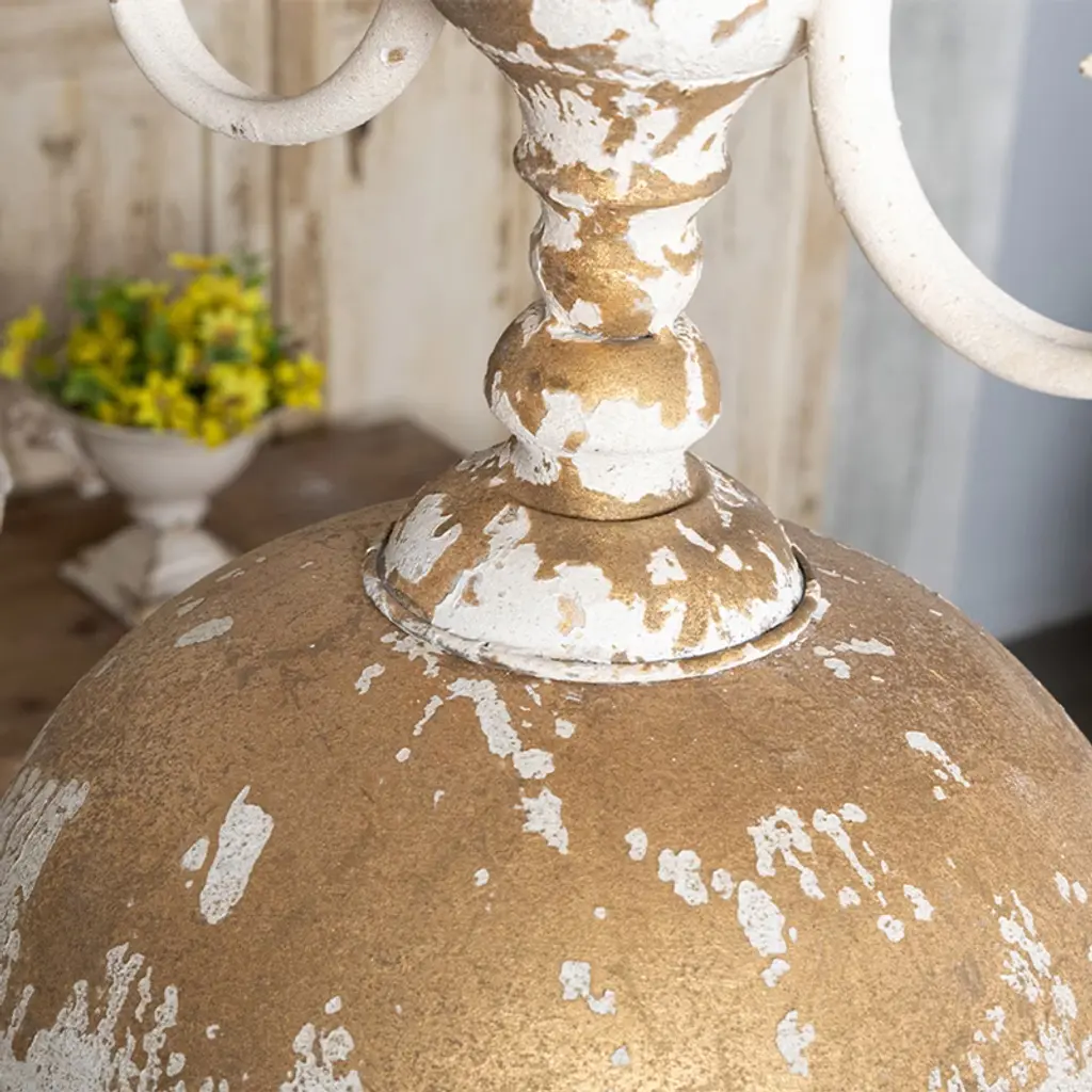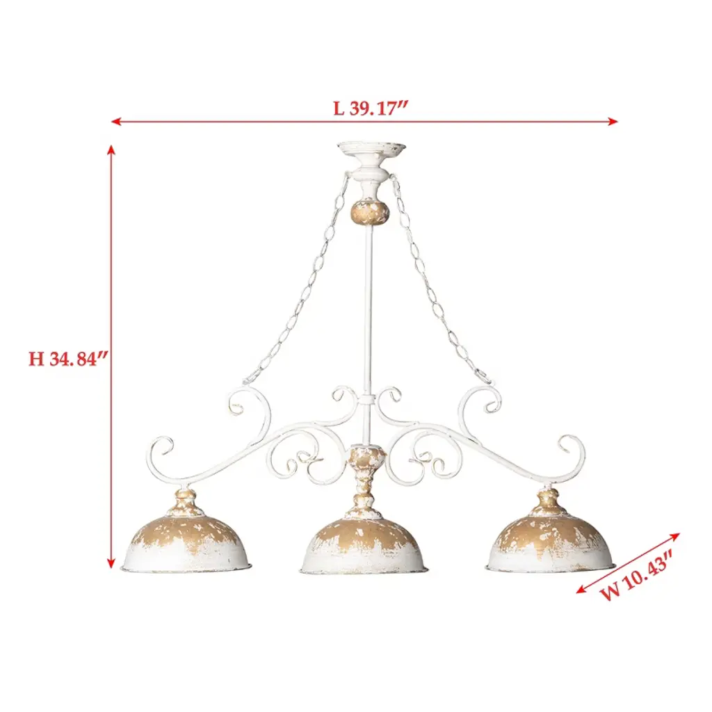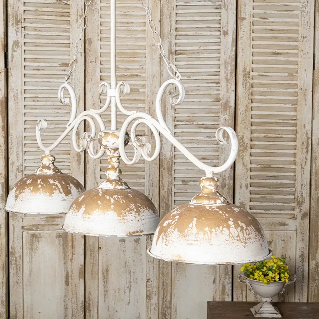 Rustic 3-light Chandelier With Distressed White And Gold Finish, Farmhouse Ceiling Fixture, 1Pc