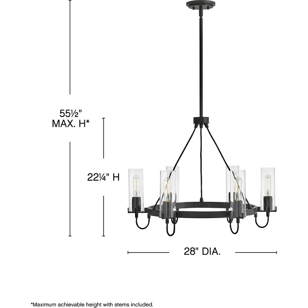 Ryden 6 Light 28 Inch Black Chandelier Ceiling Light