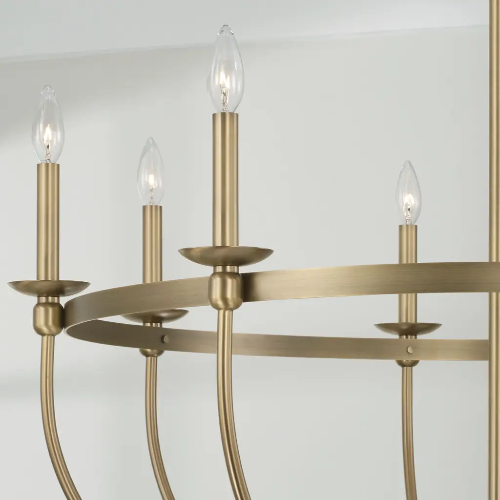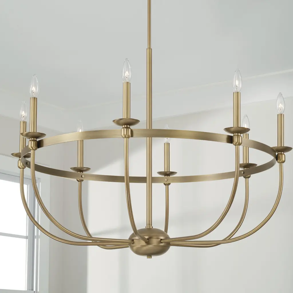 The Rylann 8-Light Chandelier embodies classic form with a fresh twist. The vintage-inspired details and Aged Brass finish bring sophisticated appeal to any space.