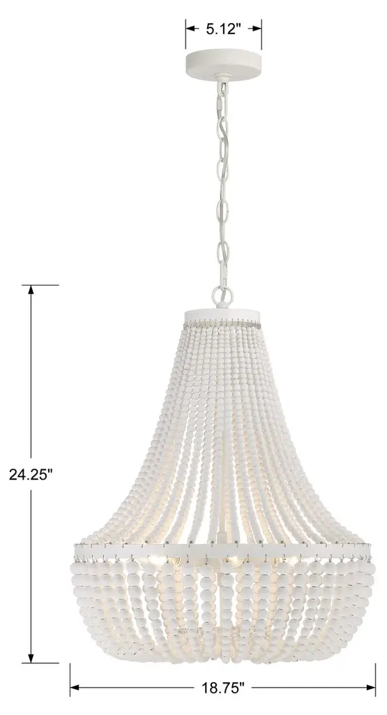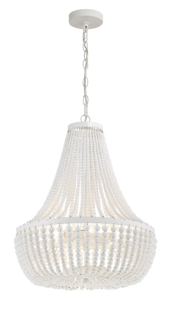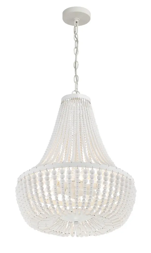 This six-bulb chandelier has a classic Empire silhouette, but the use of white wood beads rather than crystal gives it a fresh, less-formal vibe.