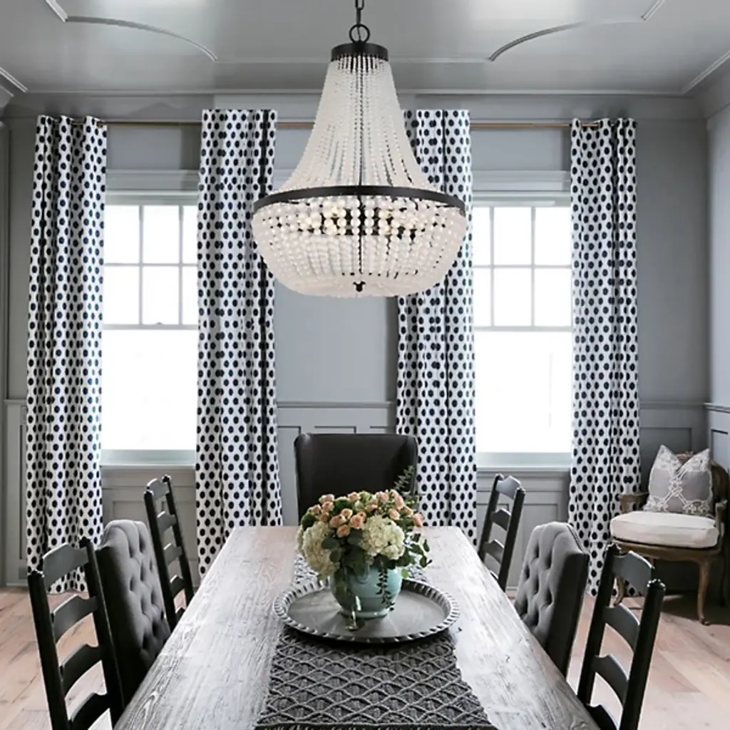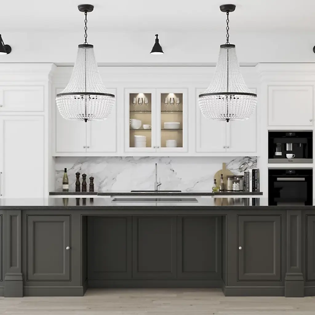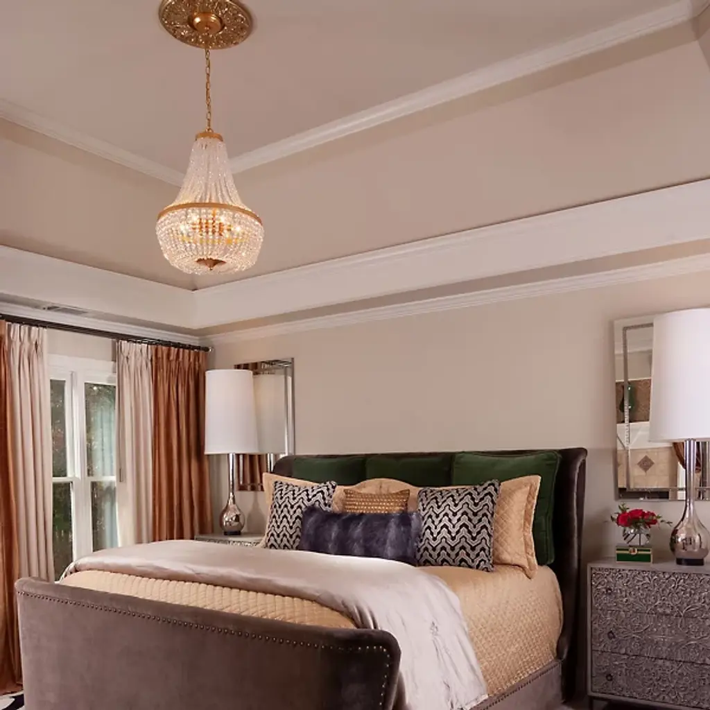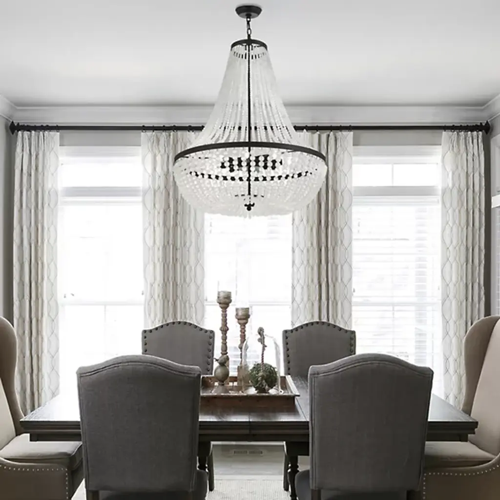 The Rylee Chandelier by Crystorama is characterized by its modern take on the traditional empire silhouette. This sophisticated contemporary fixture features a round hand-painted steel frame and cascade of streaming cut crystal beads suspended elegantly from top to bottom. Incandescent bulbs emit a warm ambient light that delicately glimmers throughout each bead for a romantic glow. Suspended by an adjustable chain, this fixture is ideal for adding a touch of fresh glamour to your space.