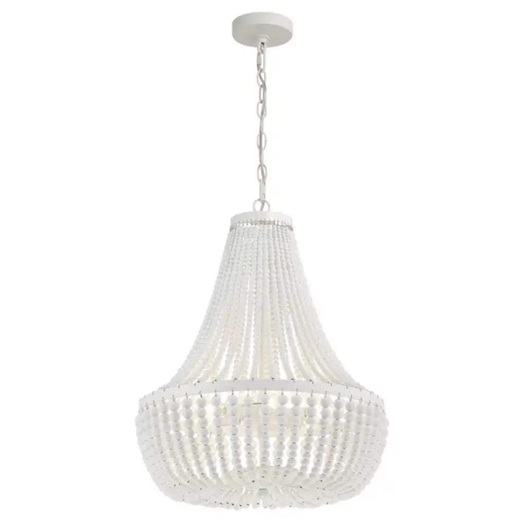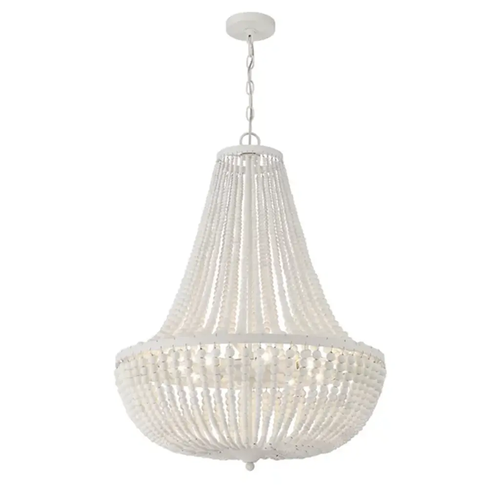 The Rylee Chandelier by Crystorama is characterized by its modern take on the traditional empire silhouette. This sophisticated contemporary fixture features a round hand-painted steel frame and cascade of streaming cut crystal beads suspended elegantly from top to bottom. Incandescent bulbs emit a warm ambient light that delicately glimmers throughout each bead for a romantic glow. Suspended by an adjustable chain, this fixture is ideal for adding a touch of fresh glamour to your space.
