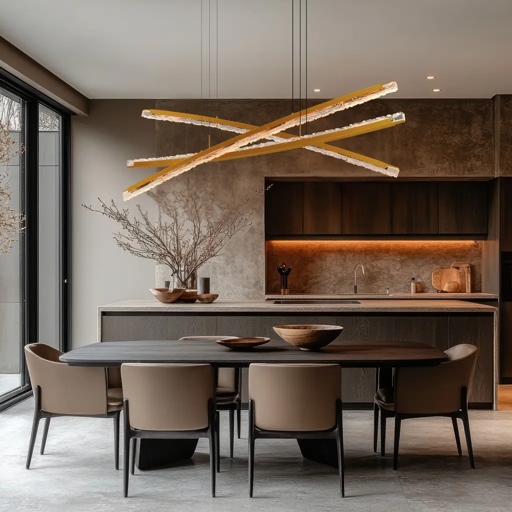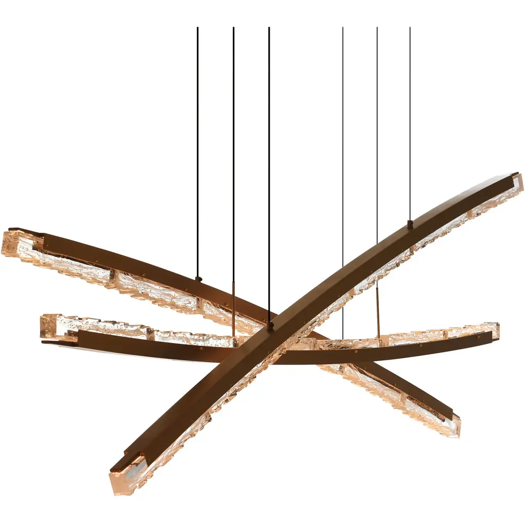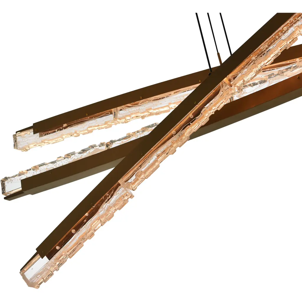 Bring sculptural elegance to your space with the Saber Integrated LED Brass Chandelier. This striking fixture combines a luxe brass finish with an asymmetrical silhouette and artisan-crafted, textured glass elements. Integrated LED lighting delivers a warm, energy-efficient glow while the handmade details add depth and character. Designed for modern and contemporary interiors, this chandelier offers both functional illumination and elevated style.
