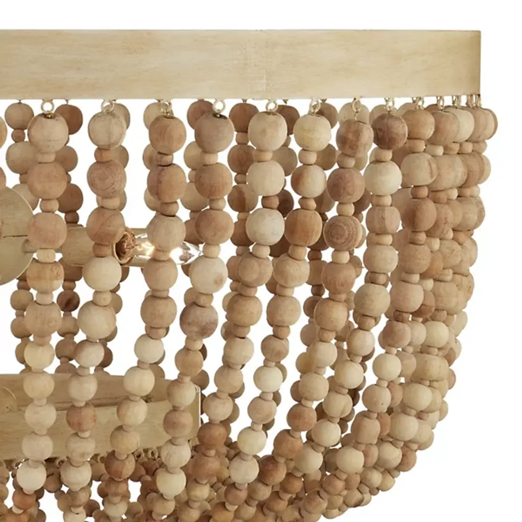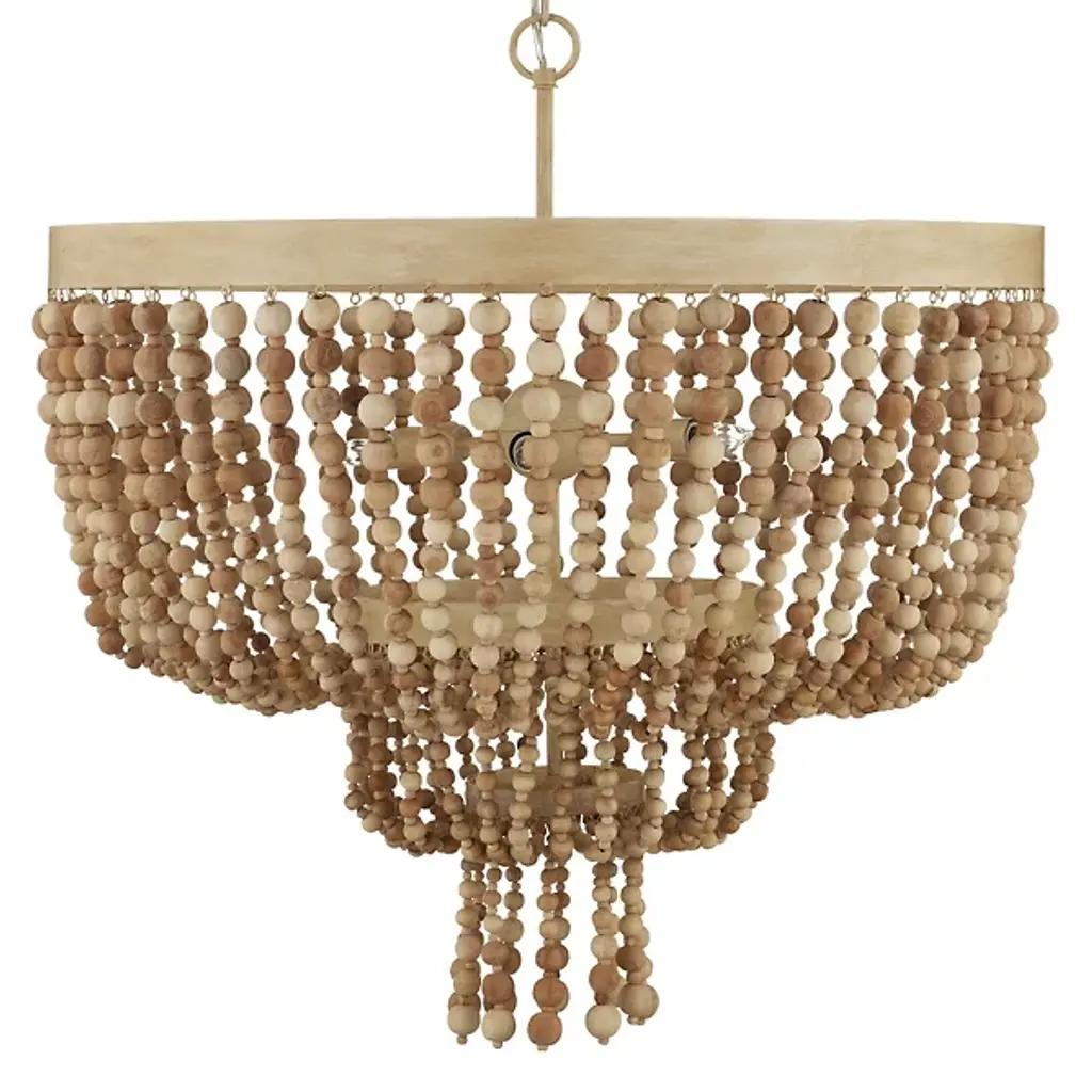The Sabia Chandelier from Currey & Company is a captivating blend of transitional design and organic aesthetics. This chandelier features a framework crafted from durable metal, creating a transitional look that seamlessly complements various interior styles. The candelabra base LEDs gracefully suspend from the frame, casting a warm glow in your space. The shade is adorned with charming wood beads, adding a touch of natural elegance. Easily adjust the brightness level with a separately sold ELV dimmer.