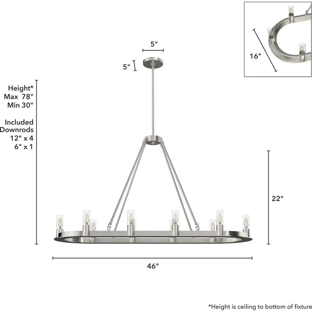 Saddlewood 10 Light 46 Inch Brushed Nickel Linear Chandelier Ceiling Light