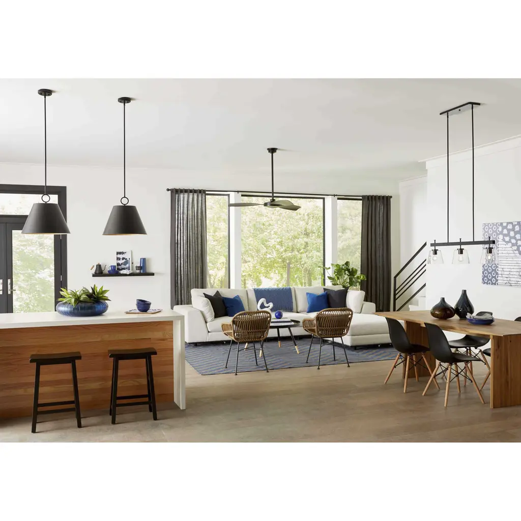 Embrace modern urban style with the Saffert linear chandelier. Clear glass shades punctuate a stoic, beam-style frame. Substantial scale and a bold form make a statement in dining rooms, kitchens and bar areas. Saffert is the perfect choice for new traditional, industrial and luxe interiors.