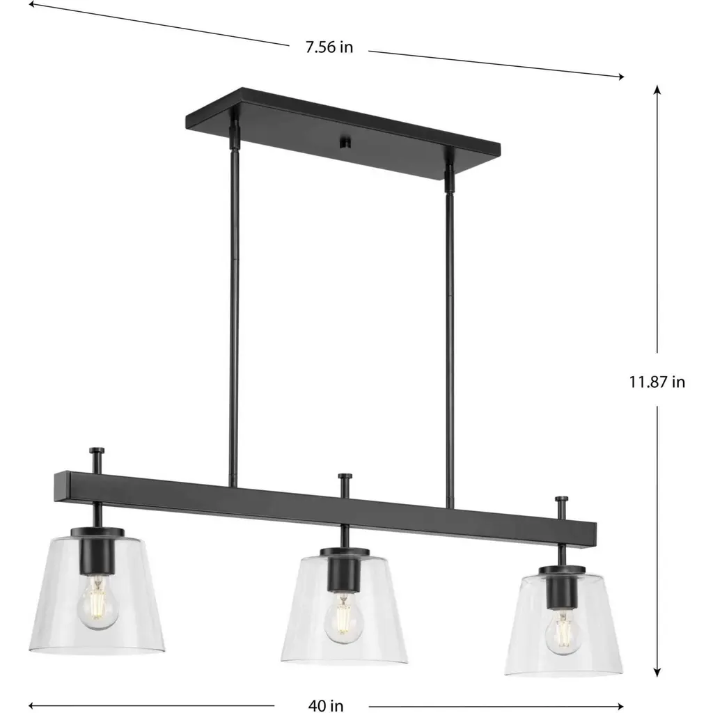 Saffert 3 Light 40 Inch Matte Black Linear Chandelier Ceiling Light, Design Series