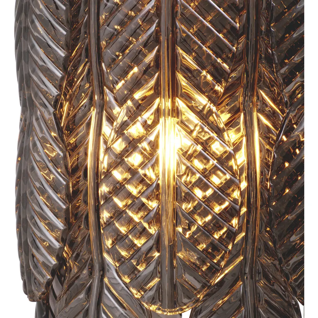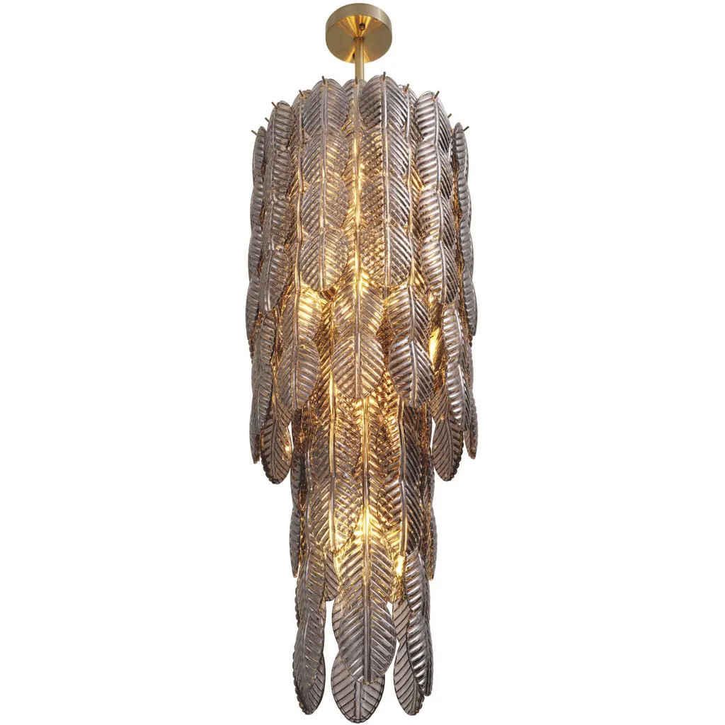 Introducing the "Sahure Chandelier" by Eichholtz, a work of art inspired by a grand Egyptian column (ca. 2458â2446 B.C.) evocative of a date palm. Emulating the lines that articulate the granite column's palm-like form, the chandelier's smoked-glass elements exude an air of timeless elegance. In size L, standing at 48.43 inches in height and boasting a 18.11 inches diameter, it captivates with a brushed-brass finish. This exquisite piece embodies the spirit of ancient craftsmanship and modern luxury, adding a touch of opulence to any space. HISTORIC PROVENANCEThe Chandelier Sahure is inspired by the ancient Egyptian Palm Column of Sahure (ca. 2458â2446 B.C,.), which stood at over 21 feet high in its original state. The granite column that now stands in the Egyptian art galleries at The Metropolitan Museum of Art in New York is one of 16 that lined the perimeter of an open courtyard in the pyramid temple for the pharaoh Sahure. Our chandelier takes it design cues from the date-palm leaves portrayed at the top of the Museumâs column. The tiered elements of the chandelier are presented in smoked glass with a brushed-brass finish for a sophisticated look.
