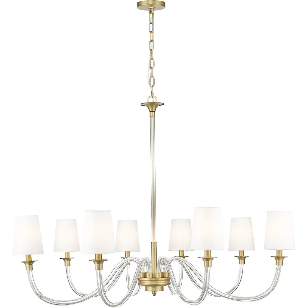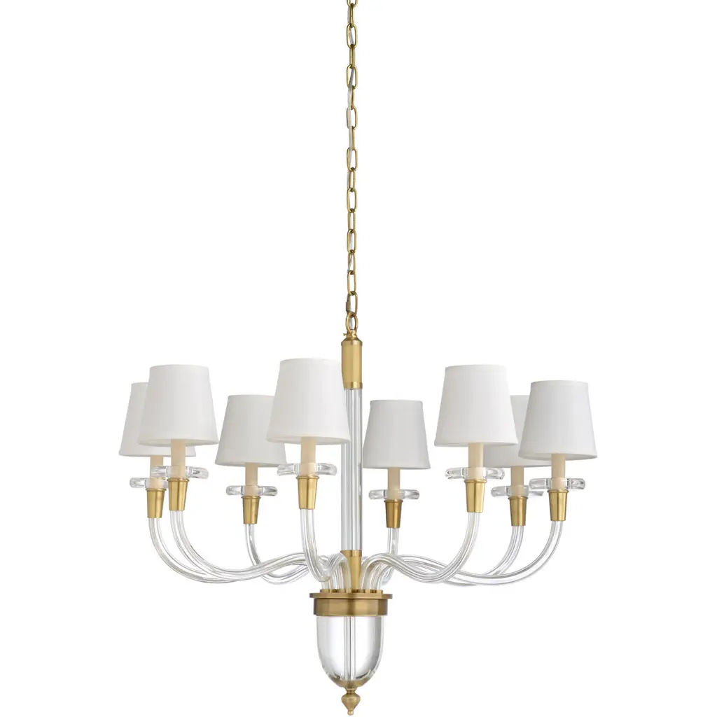 Brass Chandelier With Clear Glass,white Silkette Shades Shade Size: 4 X 5.5 X 5.25 Eight Lights