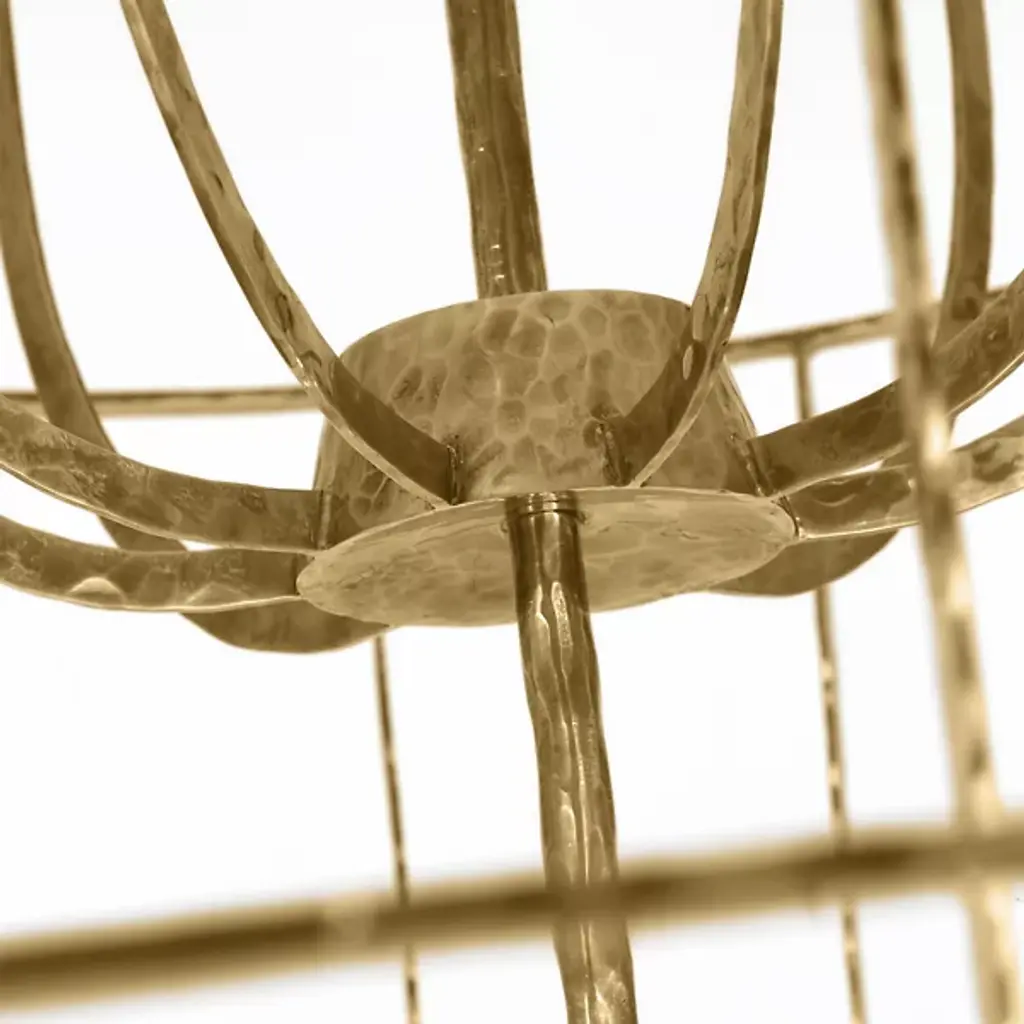 The Sanchi Grande LED Chandelier from Visual Comfort Modern is a true testament to modern luxury. Designed by Sean Lavin, the piece features a three-tiered design consisting of a thin, hammer-textured framework. Each of these tiers is meticulously hand-hammered by skilled artisans, creating a memorable interplay of slim-textured metal and open space. The chandelier's grand scale and radiant glow make it a captivating centerpiece, blending artisanal craftsmanship with rustic elegance.