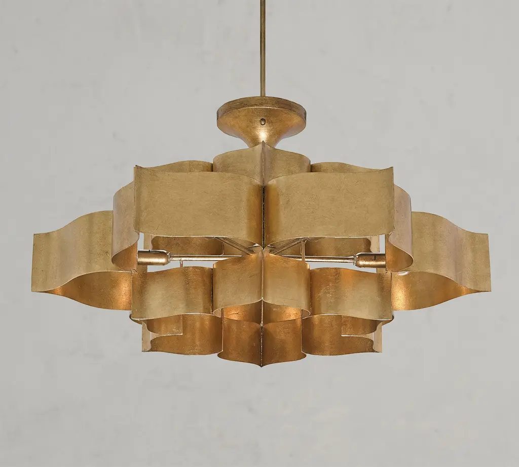 The Grand Lotus Silver Large Chandelier receives its majestic good looks from a combination of stunning workmanship and an antique contemporary silver leaf finish. The silver chandelier is skillfully fashioned from wrought iron. We offer this fixture in a number of styles and finishes.