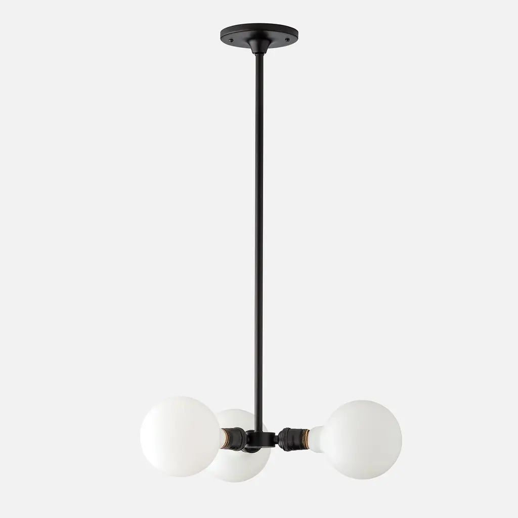 The Satellite Chandelier places pared down and honest components in a striking orbital arrangement. Part of a lighting family that channels the spirit of early 20th century industrial fixtures, the Satellite 3 Chandelier lends itself to a vintage look with exposed filament bulbs, or a brilliant modern aesthetic with silver-tipped bulbs. Assembled in our Portland, Ore. factory using ethically-sourced domestic and global components. A Schoolhouse Original. Final Sale: This item is not eligible for returns.