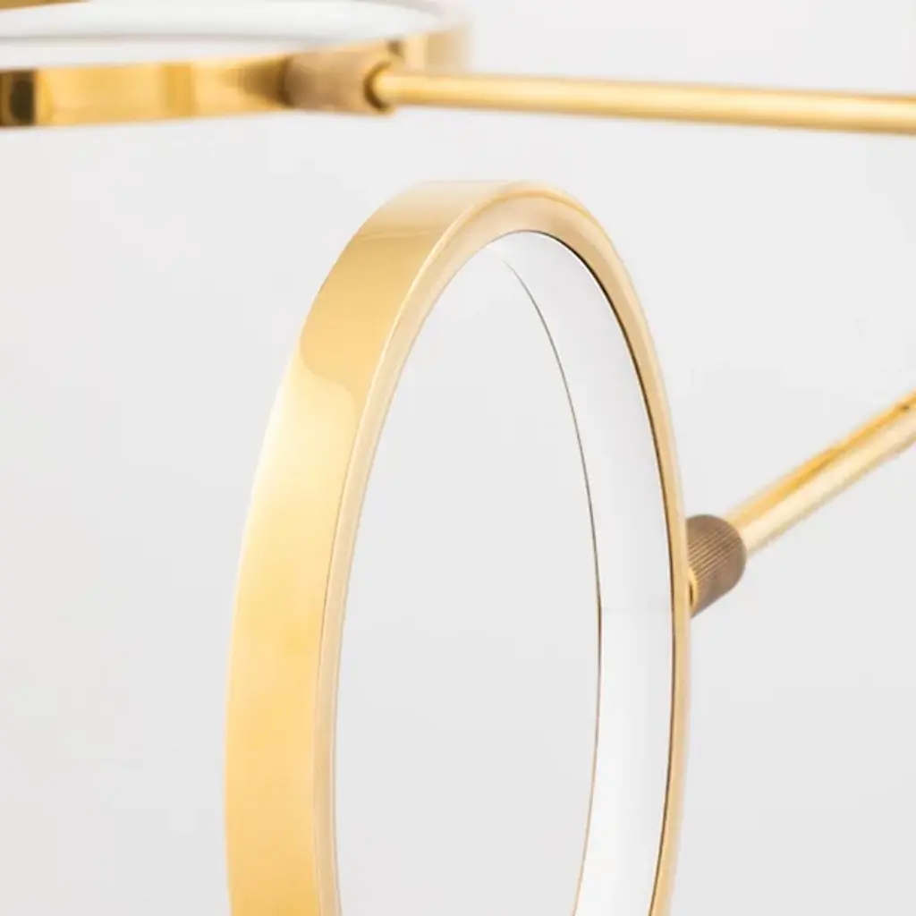 Expand your interior spaces with the stellar spectacle of the Saturn LED Chandelier from Hudson Valley Lighting. A stylish and enticing contemporary fixture, it descends from a round canopy via a single stem, extending slender horizontal arms from a series of rotating hubs below. Each arm terminates in a differently-sized metal ring structure that acts as an encompassing housing for integrated LED lamping, creating a larger structure that suggests a stellar map that glitters with a wide-reaching ambiance.
