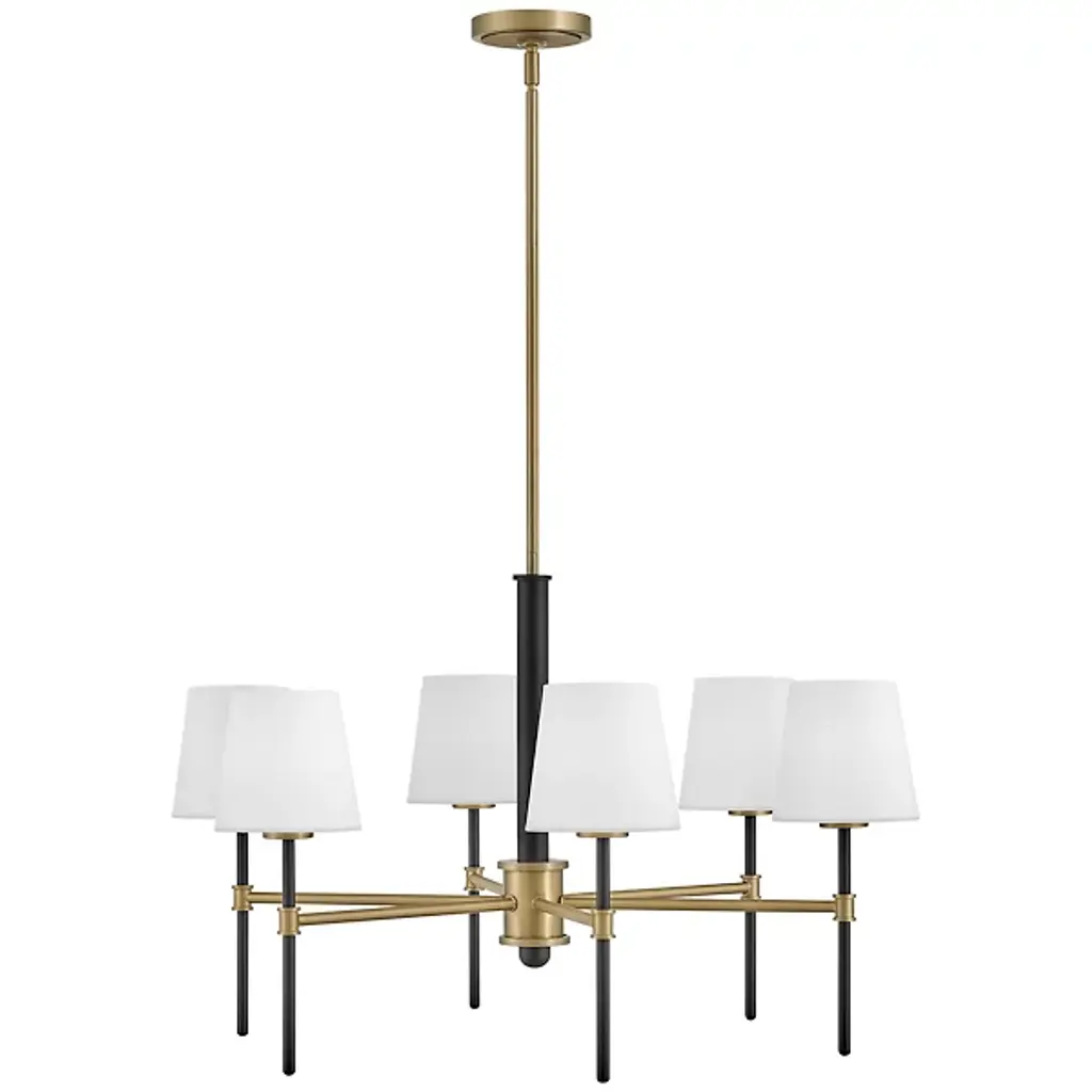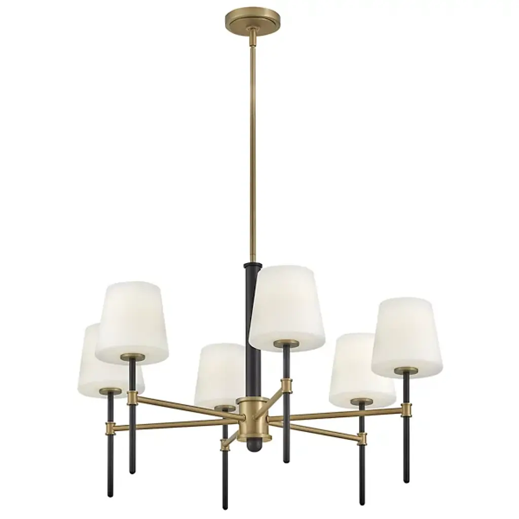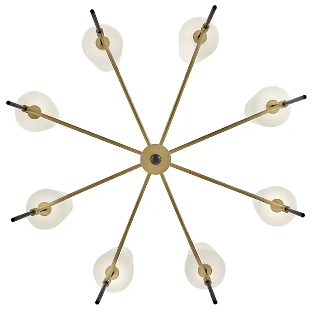 Effortlessly blending striking appeal with a fusion of traditional and captivating mid-century modern details, the Saunders Chandelier from Hinkley is a luminaire of distinct character. Its unique spoked silhouette and decorative stem holders create an appealing aesthetic. Paired with blown, etched opal glass shades, Saunders achieves a perfect equilibrium of timeless elegance and contemporary charm. Illuminate your space with a chandelier that harmoniously blends classic and modern elements, making Saunders a standout choice for sophistication in any room.