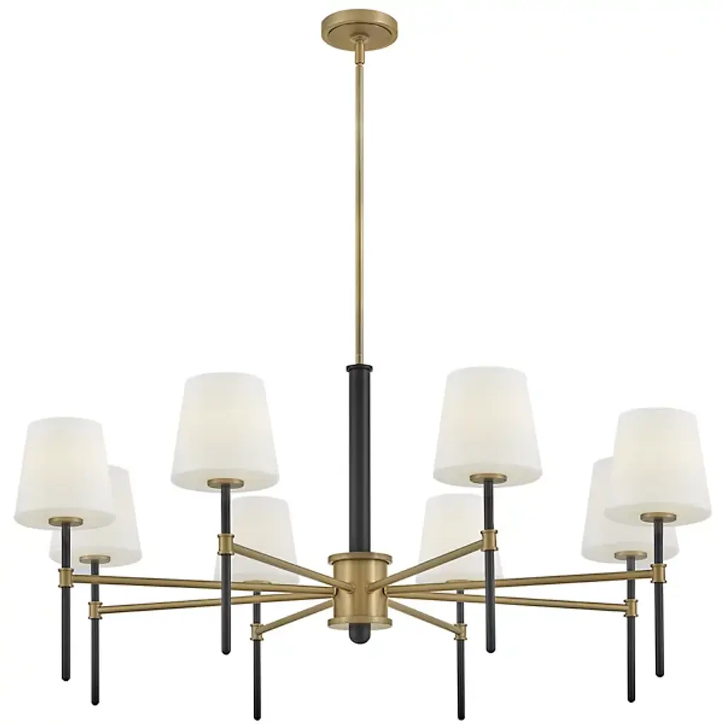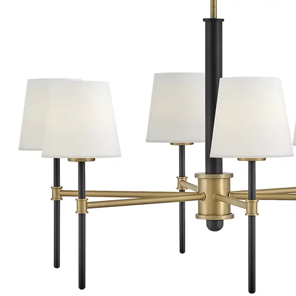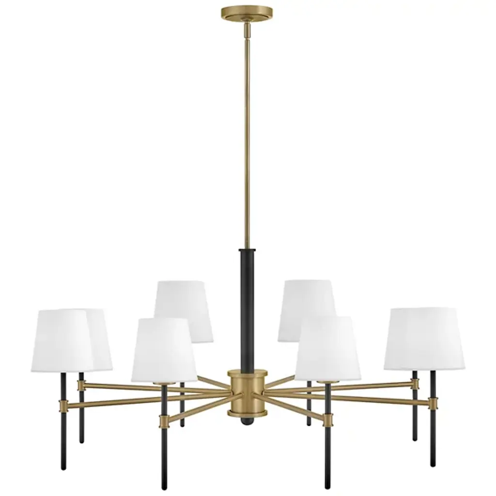 Effortlessly blending striking appeal with a fusion of traditional and captivating mid-century modern details, the Saunders Chandelier from Hinkley is a luminaire of distinct character. Its unique spoked silhouette and decorative stem holders create an appealing aesthetic. Paired with blown, etched opal glass shades, Saunders achieves a perfect equilibrium of timeless elegance and contemporary charm. Illuminate your space with a chandelier that harmoniously blends classic and modern elements, making Saunders a standout choice for sophistication in any room.