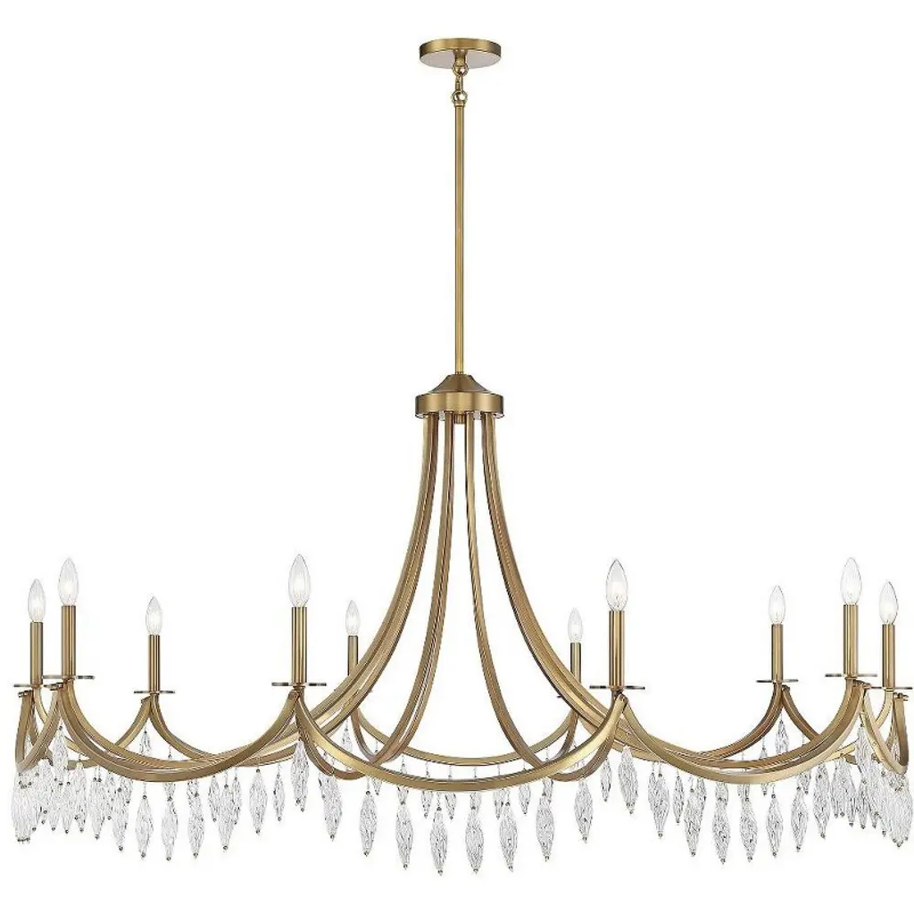 Collection: Mayfair, Material: Metal, Finish Color: Warm Brass/Chrome, Width: 45", Height: 34", Length: 45", Chain Length: 120", Lamping Type: Incandescent, Number Of Bulbs: 10, Wattage: 60 Watts, Dimmable: Yes, Moisture Rating: Dry Rated, Desc: Get a unique mixed-metal take on lighting with this Savoy House Mayfair 10-light chandelier! Its central ring crafted from acrylic, long crystal drops and Warm Brass finish combine to create a true conversation starter. Mayfair is 34" in height and 45" in width. It uses ten candelabra size bulbs of up to 60 watts per bulb. Bulbs not included.,