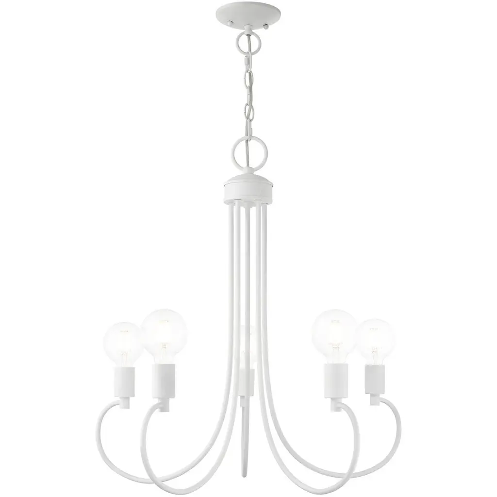 An expansive reach and rustic charm define the Savoy House Salerno 6-light chandelier. It beautifully enhances large rooms while not taking up too much visual space or attention. Finished in White Bisque. Salerno is 25" in height and 42" in width. It uses 6 candelabra size bulbs of up to 60 watts each (bulbs not included).