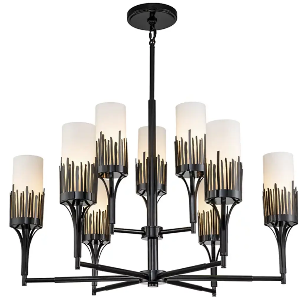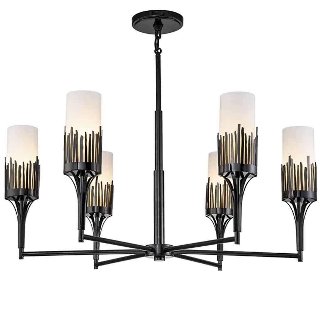 The Sawgrass Chandelier by Lucas McKearn is a modern marvel in steel craftsmanship. Crafted from durable steel, this luminaire boasts an opulent opal etched glass shade, casting a soft and inviting glow. The sleek design seamlessly integrates into your space, fusing contemporary aesthetics with timeless functionality. Illuminate your surroundings with sophistication as it effortlessly combines quality materials and refined aesthetics, offering a lighting solution that elevates your decor with a touch of modern elegance.