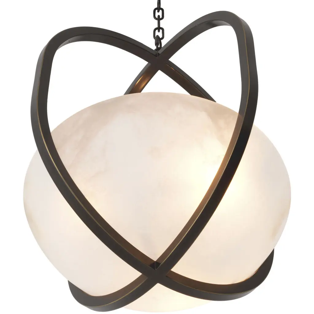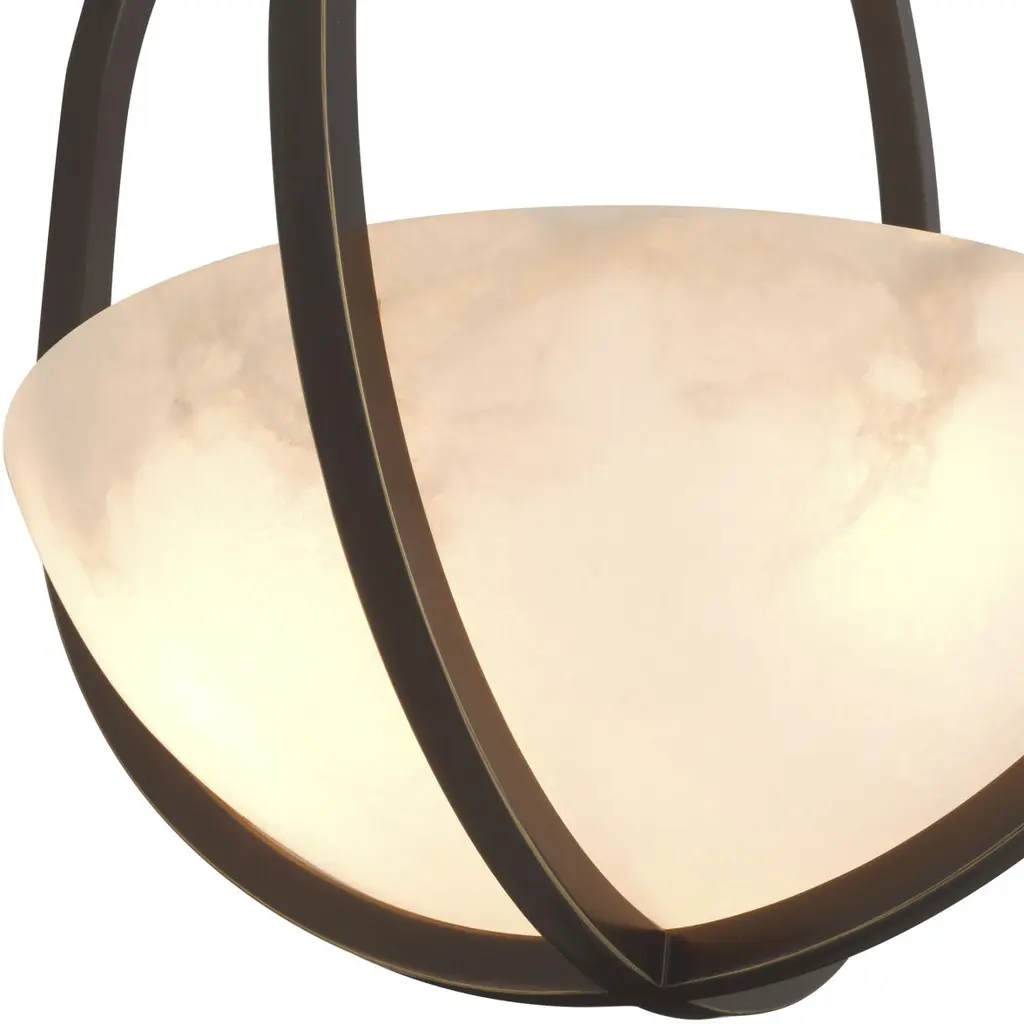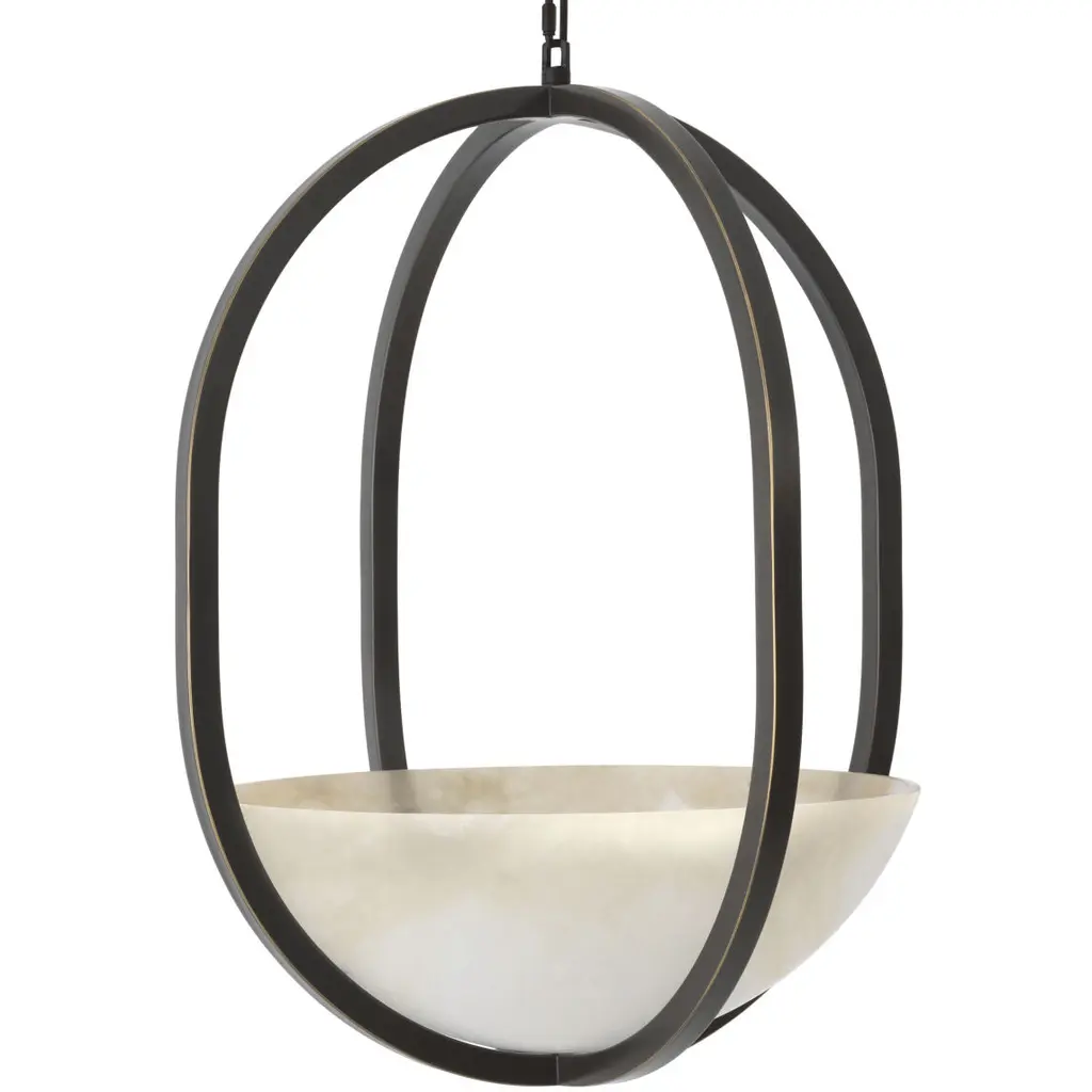 Introducing the Scapa Chandelier by Eichholtz, a luxurious centerpiece exquisitely crafted from a single piece of alabaster. The alabaster bowl, enclosed by a striking bronze highlight frame, transcends elegance for both modern and classic spaces.