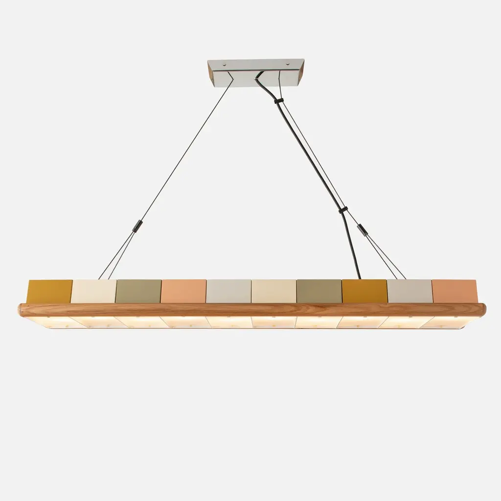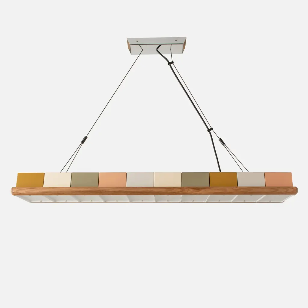 For our Roll & Hill for Schoolhouse lighting collection, we teamed up with Creative Director Jason Miller and The Roll & Hill Design Team to create the Bento 10 Chandelier. A playful yet polished light fixture inspired by designs of the past—namely Donald Judd’s practical minimalism and Le Courbusier’s tubular furniture—and the modular metal shades of Japanese lunch boxes. With multicolored painted aluminum boxes that form a bold striped pattern, and Pennsylvania-oak framing the design, this chandelier brings style to your space without making a fuss. And thanks to reeded glass, the light has a soft, inviting warmth that makes any room—from your kitchen to the dining room—feel a little more welcoming.Get Finish Samples