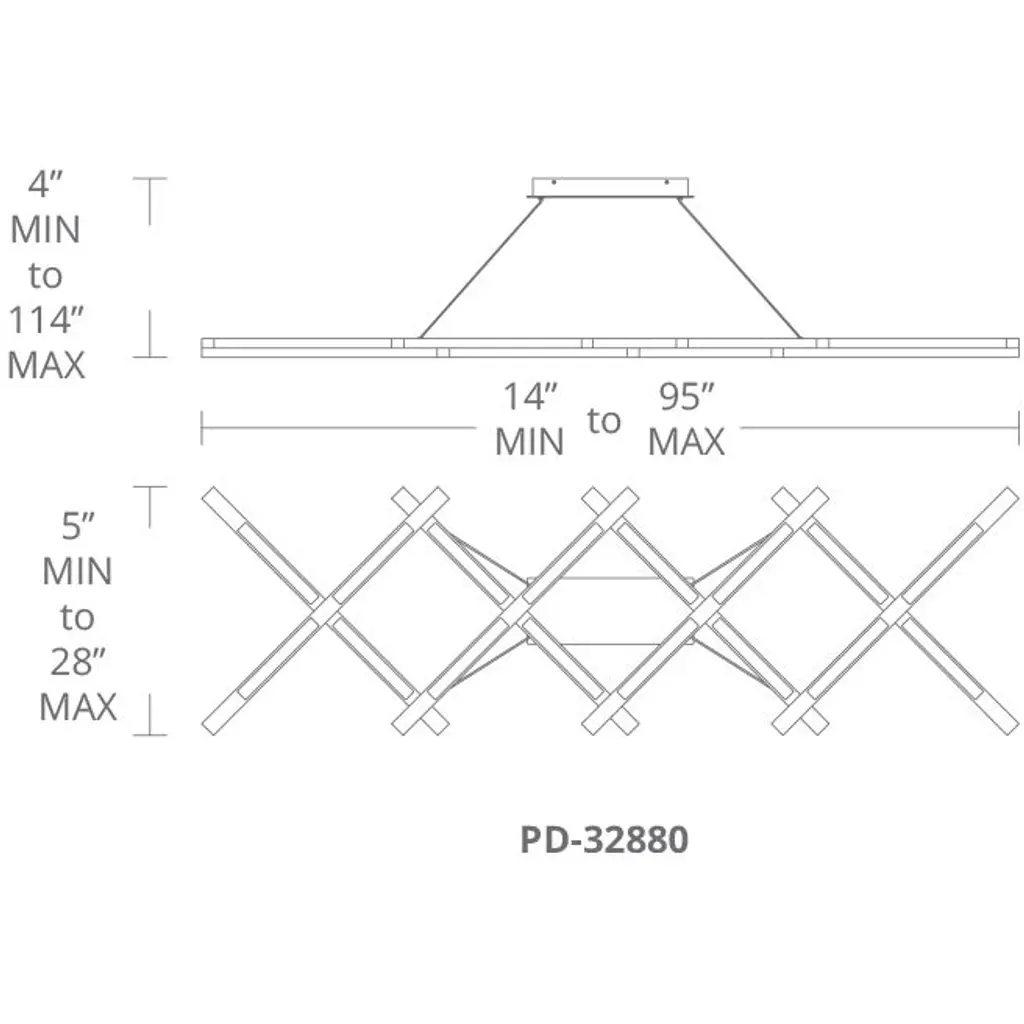 A customizable design that can contract or expand into the exact shape you want, Scissors cuts a fine figure in dining rooms, museum display areas, hotels and more. Finely crafted strips of extruded aluminum are affixed without the appearance of any fasteners for a finished appeal, while cutting-edge LEDs create a smooth, even illumination that’s consistent across each section of the design. Energy-efficient integrated LED's provide a long-lasting maintenance-free bright and even illumination.