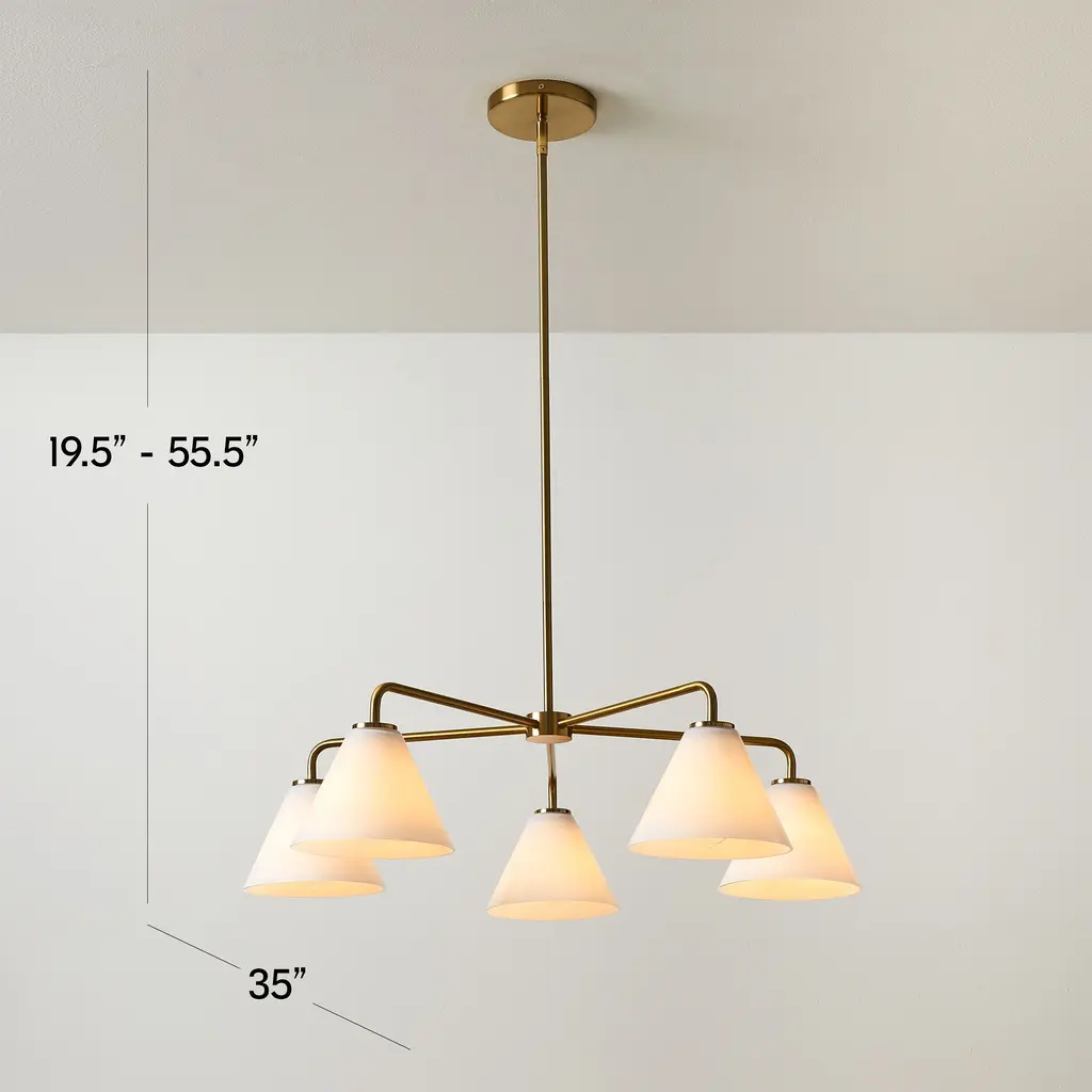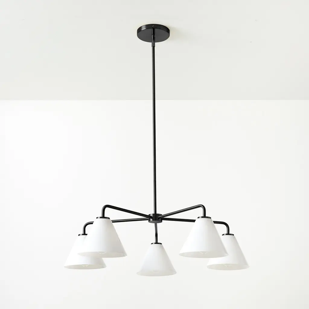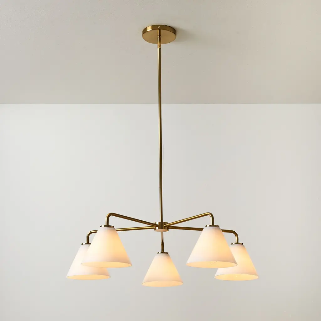 Create lighting with a custom feel with our Sculptural Glass collection. Part of our biggest lighting collection yet, this chandelier's cone shades get a glowing review in any space.