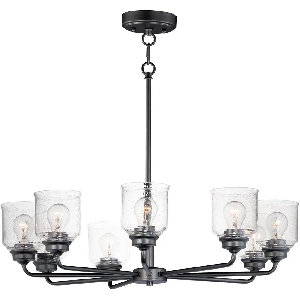 This nautical-inspired collection features Clear Seedy glass cones suspended by a yoke frame. The clear glass offers abundant lighting and compliments the styling of the fixture. Make it a more industrial look by adding filament E26 light bulbs.