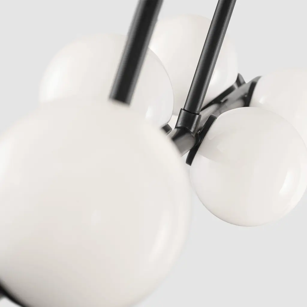 The Altair collection combines simple metal structures with elegant milk glass globes that draw inspiration from delicate water droplets. Elegant with a buoyant sensibility, the minimalist structures will create a refined statement.