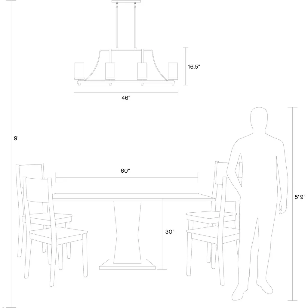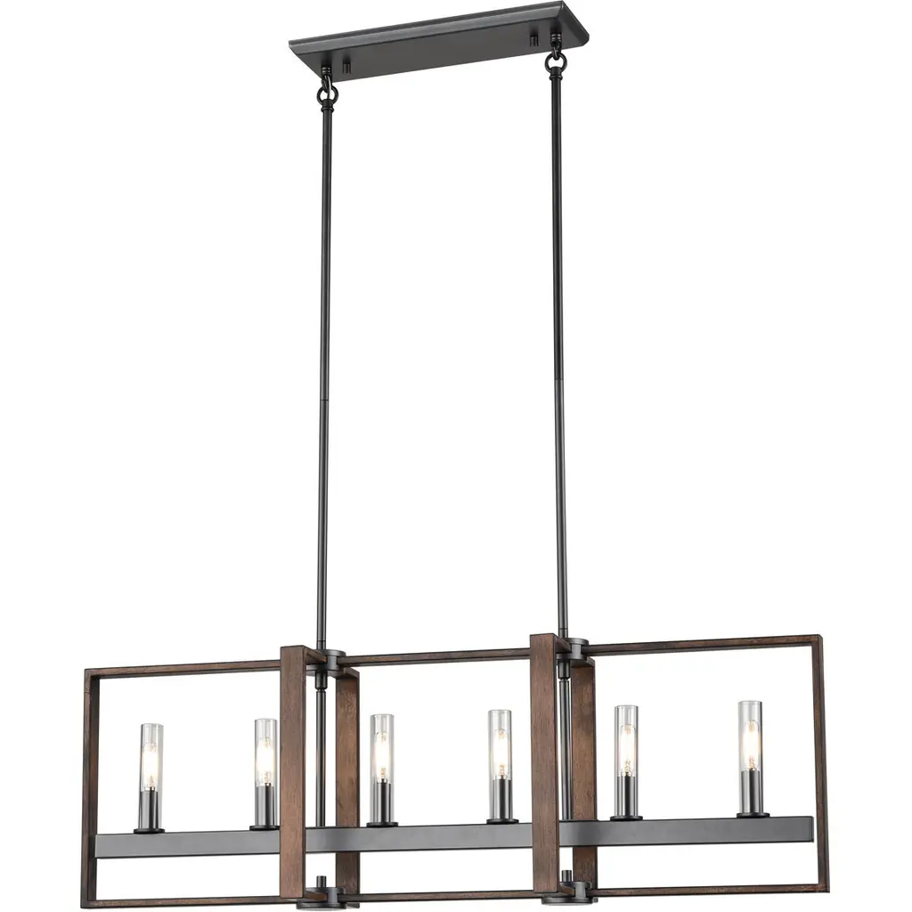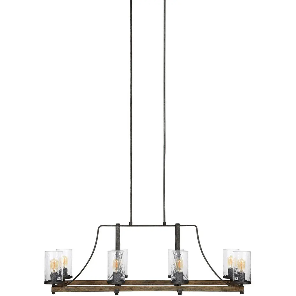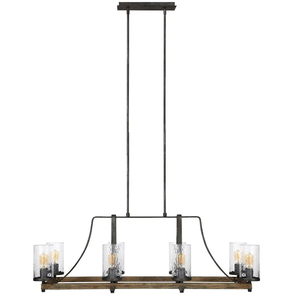 Sean Lavin Angelo 8 Light 46 Inch Distressed Weathered Oak / Slate Grey Metal Linear Chandelier Ceiling Light