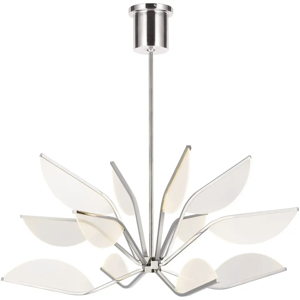 The Belterra chandelier by Sean Lavin is inspired by the lotus flower. Petal-shaped LED light guides beautifully illuminate this contemporary design and capture the purity of the chandelier's graceful stem-work. Designed with a minimal frame and offered in multiple elegant finishes, Belterra provides a touch of contrast when turned on and off. The Belterra Family includes alternate fixture sizes to illuminate the space as a stand-alone piece or installed in multiples. Lamping options are compatible with most dimmers. Refer to the Dimming Chart for more information.