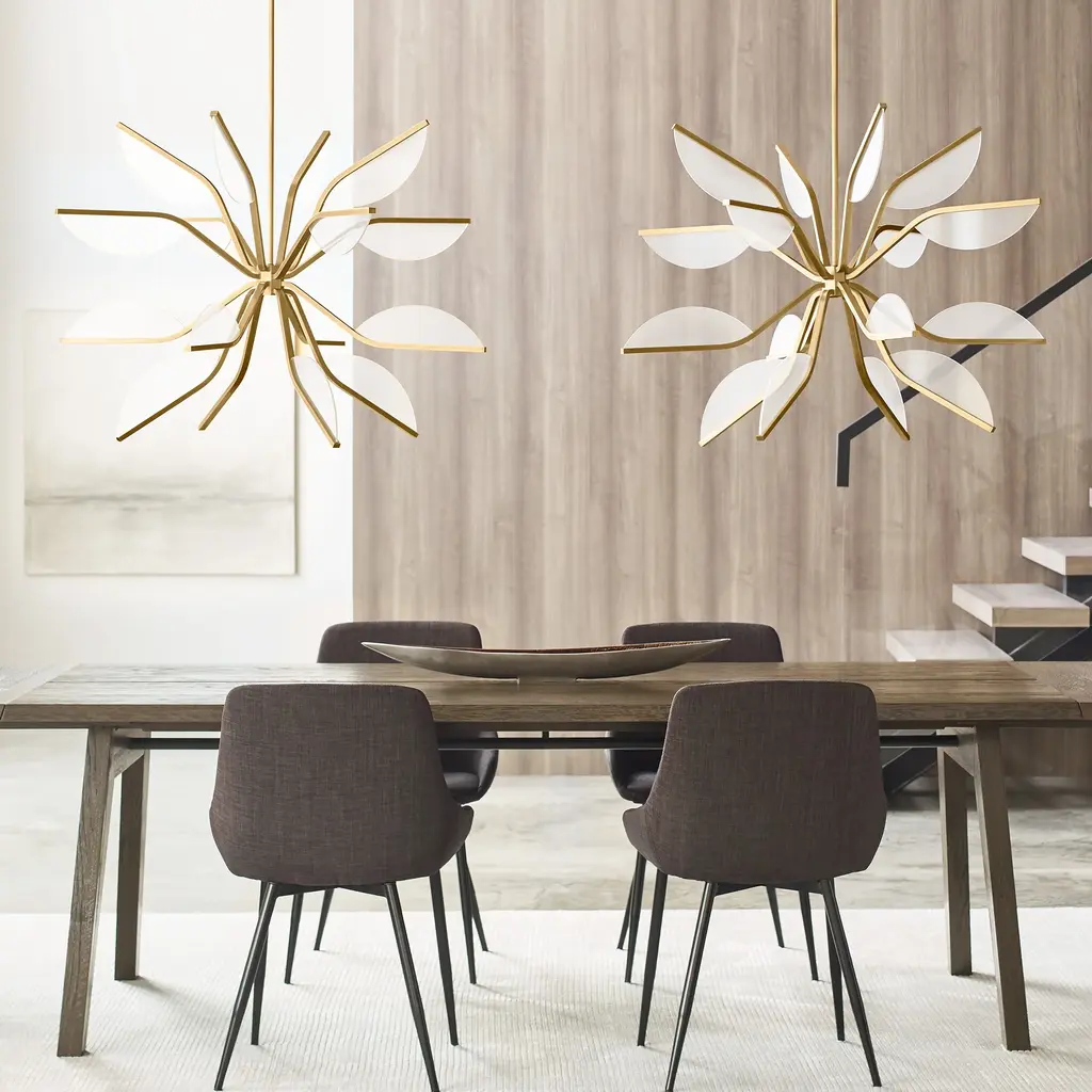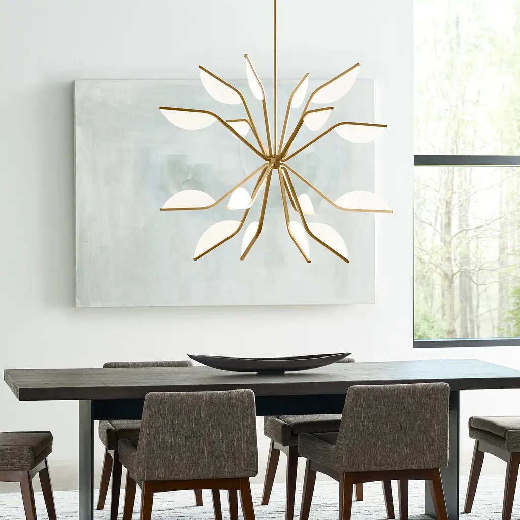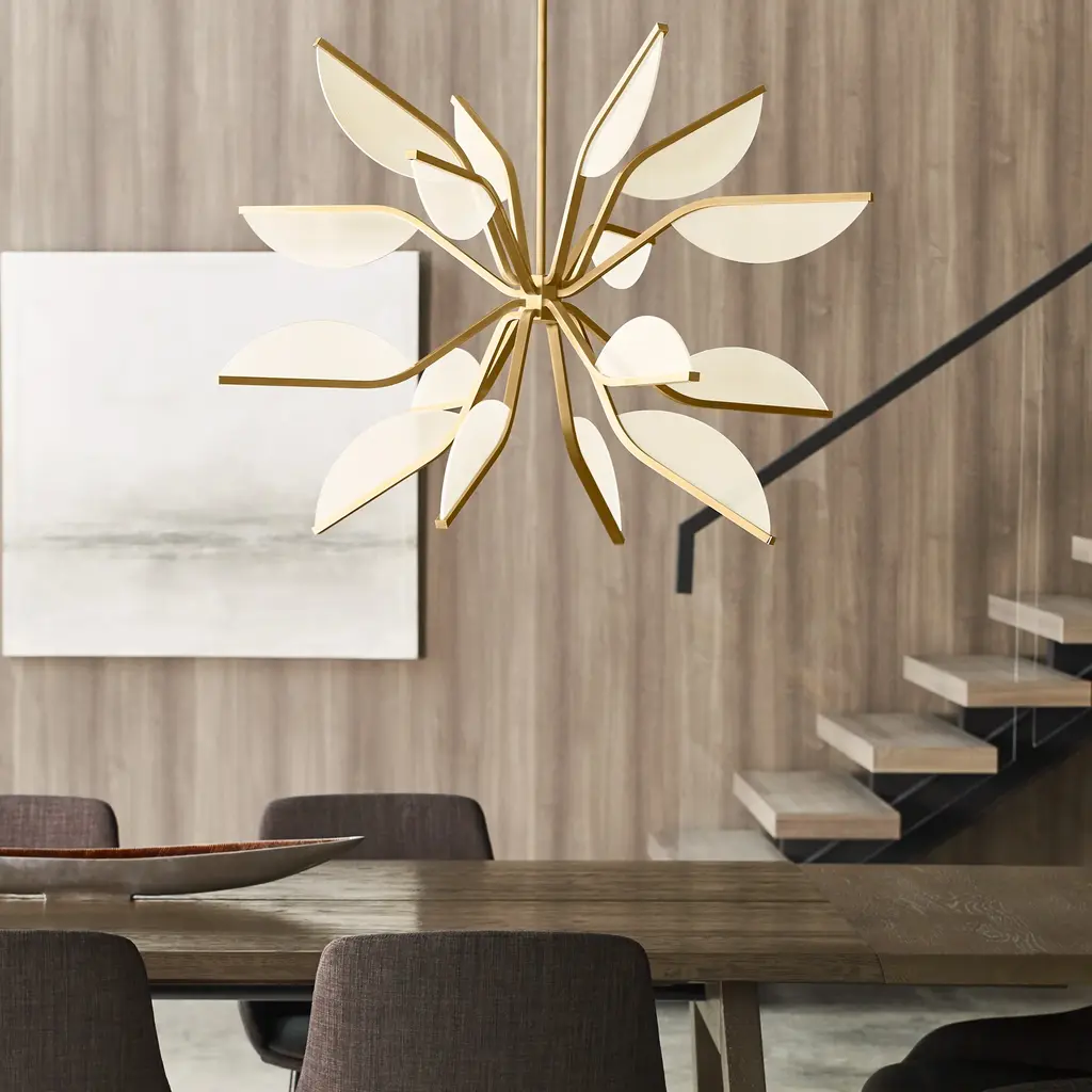 Bring dynamic lighting design to your space with the Sean Lavin Belterra Tall LED Chandelier from Visual Comfort & Co. Inspired by the lotus flower, its petal-shaped LED light guides exude grace and purity, perfectly captured by the chandelier's stem-work. With multiple sizes and dimming options, this is a stunning addition to any room. Highlights