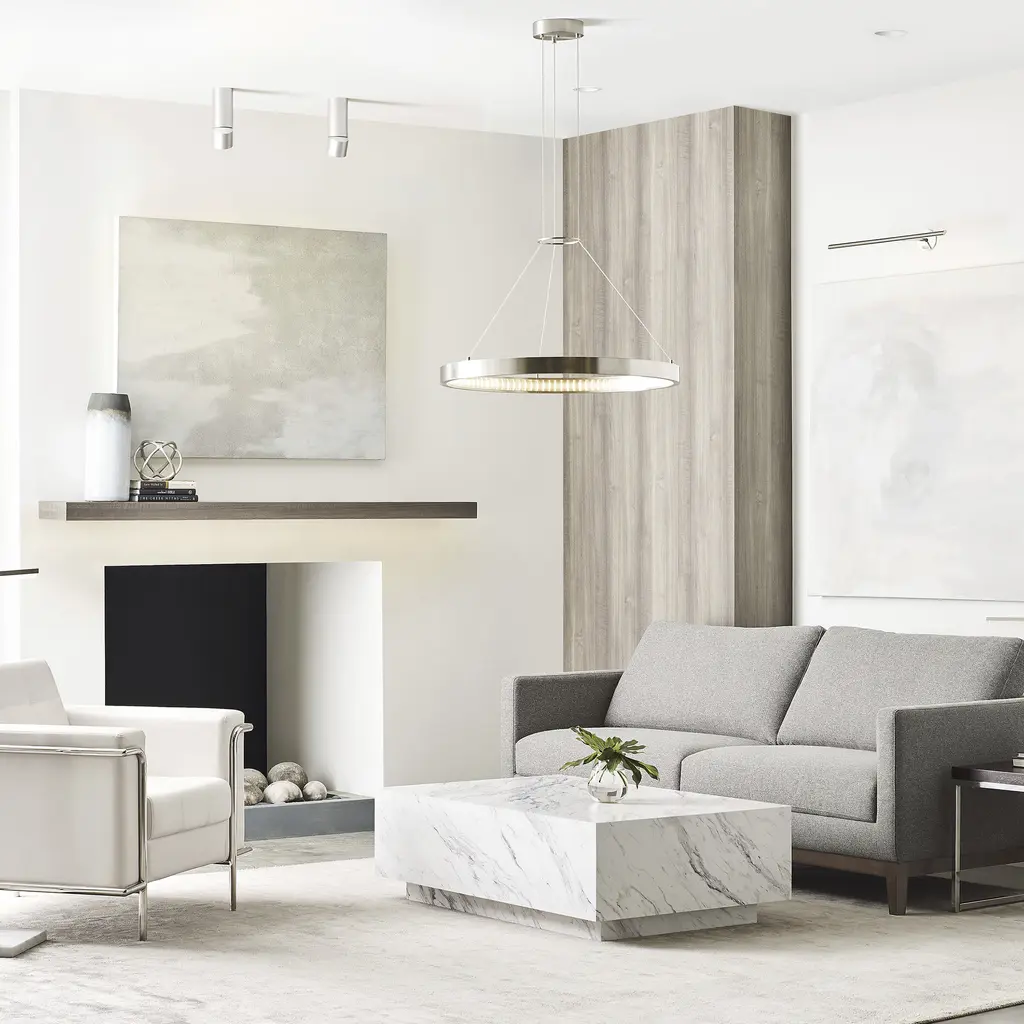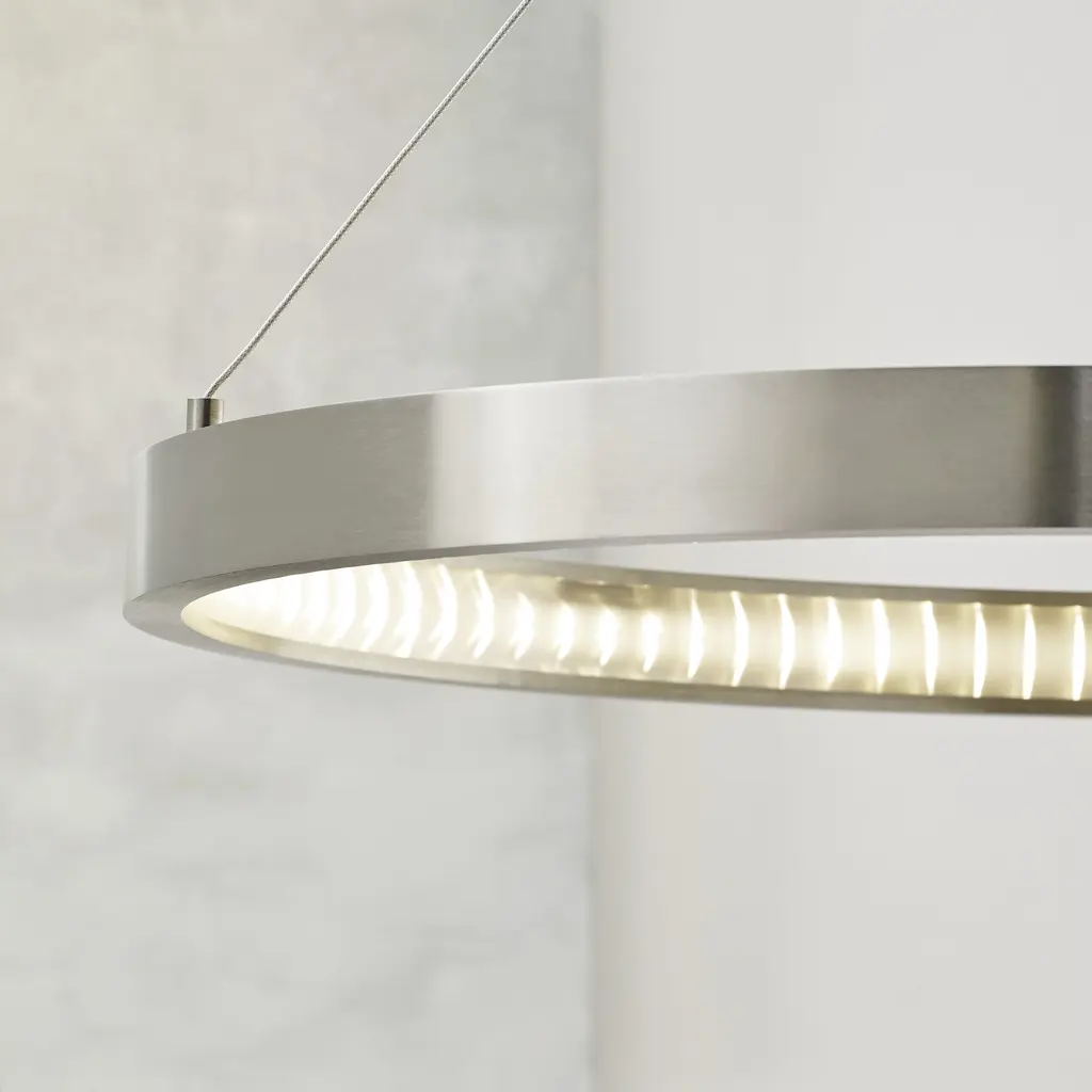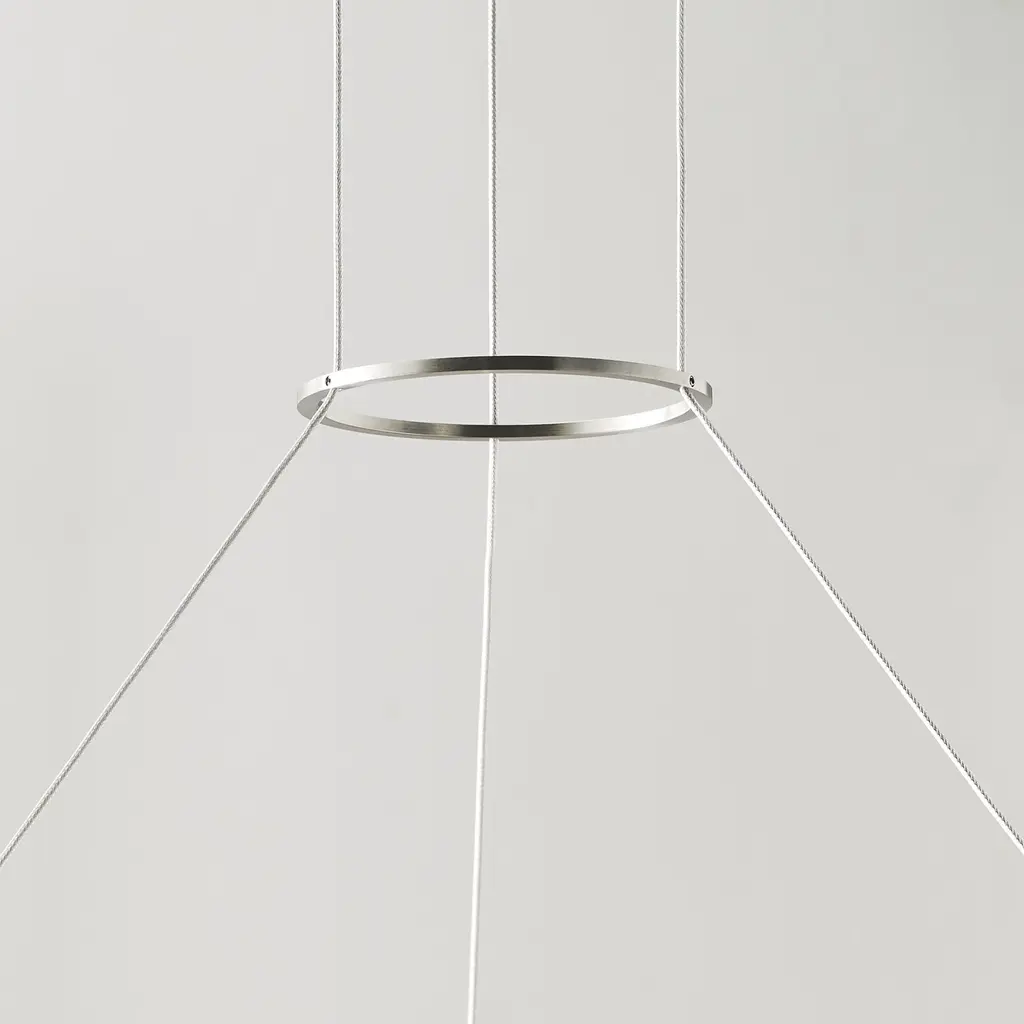 Inspired by large medieval cast iron chandeliers, the Bodiam chandelier by Sean Lavin features a thick outer metal ring that houses dual stacked rows of inward firing LEDs. These LEDs are treated with a special linear spread diffuser to create a unique twinkling effect while evenly distributing the light and minimizing glare. With a glare-free light distribution the Bodiam chandelier is ideal for family room lighting, foyer lighting and a number of commercial lighting applications. Install independently or clustered together for an enhanced look. Lamping options are compatible with most dimmers. Refer to Dimming Chart for more information.