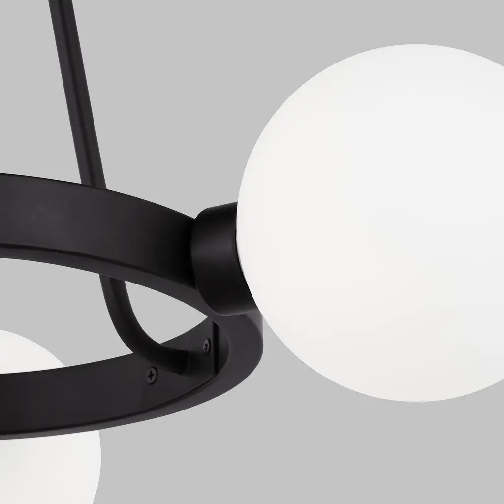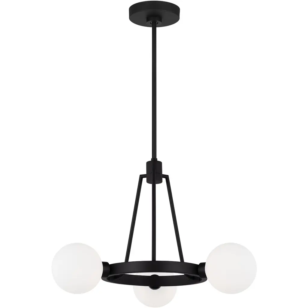 The Clybourn three light single tier chandelier in Midnight Black is an industrial yet minimalist design, making this fixture perfect for an eclectic living room or over a modern dining room table. Milk Glass gives the Clybourn series a more current look.
