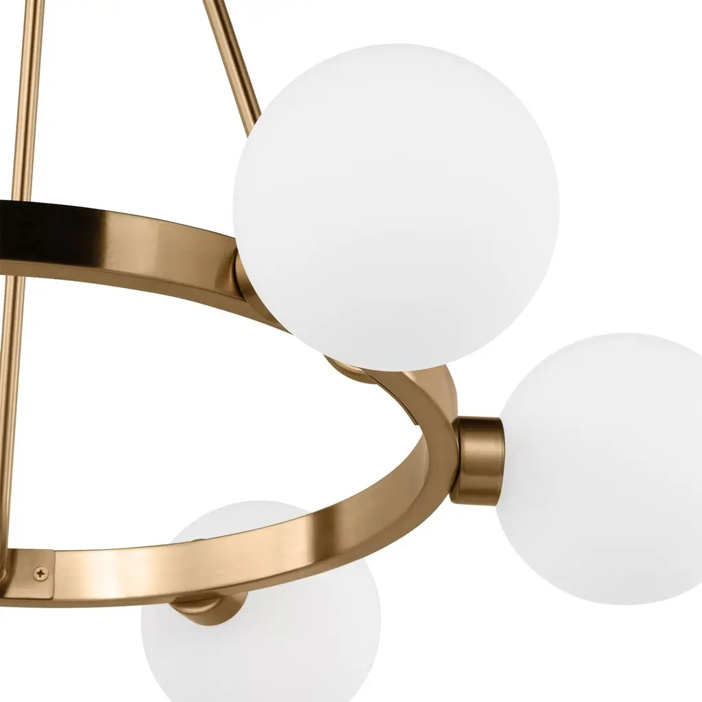 Boasting bold globes of milk glass and contrasting finishes, this collection exhibits a mixture of drama, elegance, and fun.