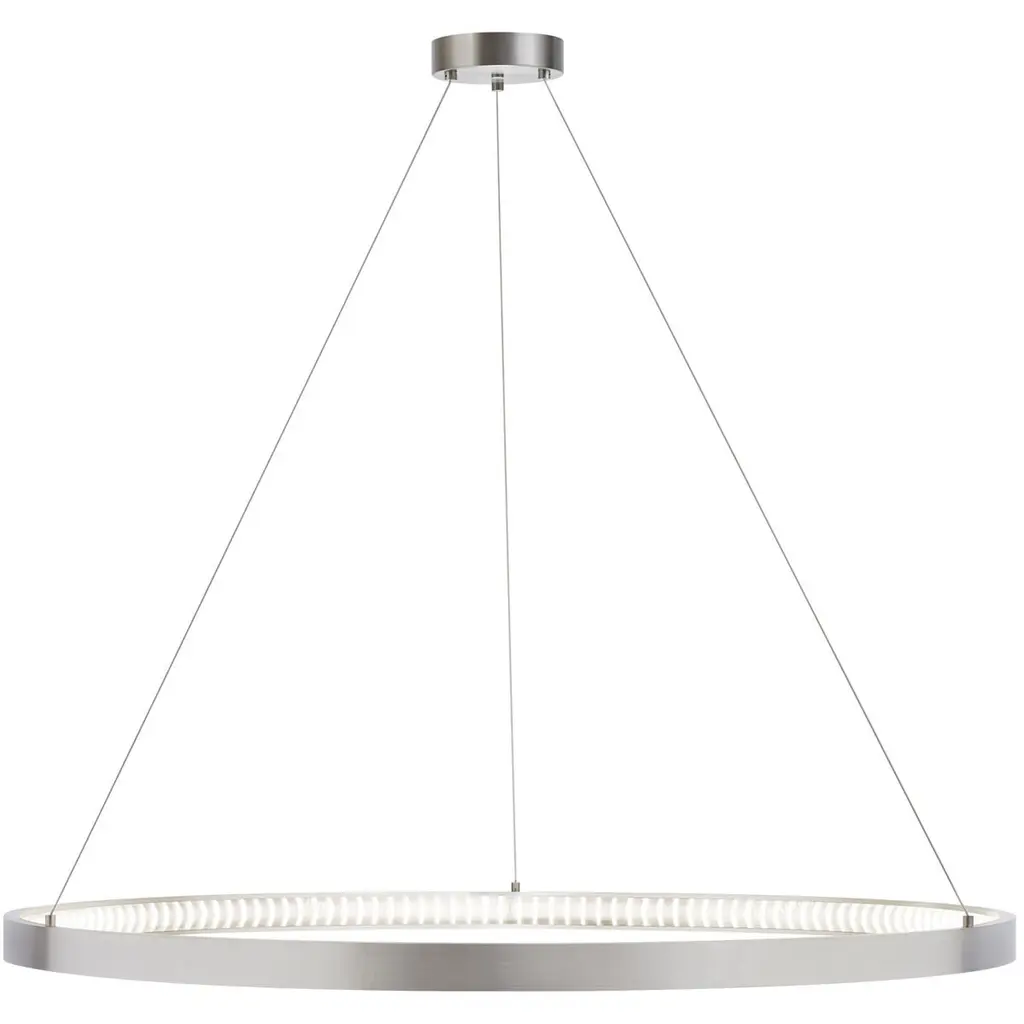 The Fiama chandelier by Sean Lavin is a transitional style chandelier but with an entirely modern twist. At its most unadulterated form the Fiama is a slender metal ring that houses gently diffused upward and downward firing LEDs, providing functional light with an ultra-chic aesthetic and are accented with metal spacers for a touch of contrast. This modern work of art is ideal for a wide range of lighting applications such as dining room lighting, foyer lighting and a host of commercial lighting applications. The Fiama pendant light ships with a fully dimmable integrated LED lamp.