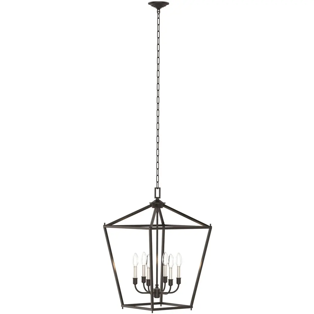 The transitional Landen features chandeliers with either our industrial Smith Steel finish details. This modern farmhouse collection is versatile enough to fit within a wide range of decor from farmhouse to urban loft. A grand 53" high two-tier chandelier makes a dramatic statement. All fixtures in the Landen collection are damp-rated, however, the chandeliers with the Antique Forged Iron/Painted Aged Brass finish include optional glass candle covers to protect the lamping from moisture.