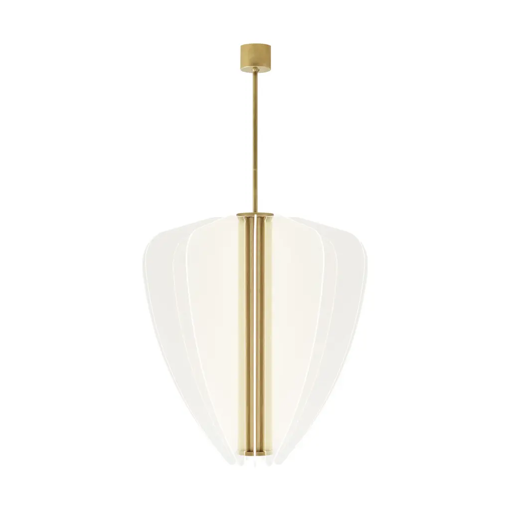 The Nyra Chandelier by Sean Lavin is a stunning collection inspired by the geometric nature of a flower bud. Featuring light guide LED technology, Nyra has beautiful acrylic LED petals producing an ample amount of general illumination. Offered in two modern finishes, Plated Brass and Nightshade Black, Nyra Chandeliers are designed to be installed individually or in multiples to emulate a unique bouquet of flowers. For a coordinating look, the Nyra Collection is available in additional Chandelier sizes, a Mini-Pendant and a generously sized Linear Suspension. Features