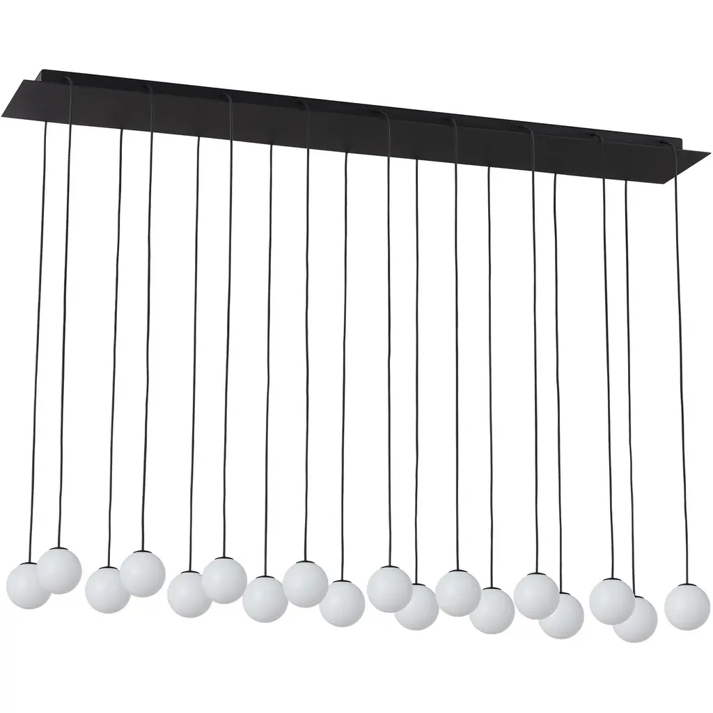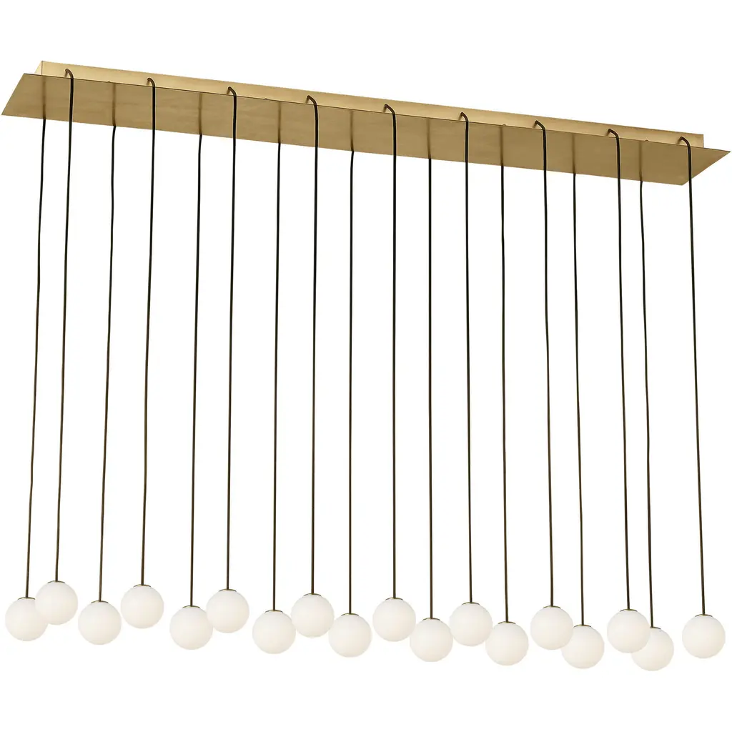 The classic pearl inspires the Orbet Trellis Chandelier by Sean Lavin with perfectly stacked milk glass orbs. LED illumination through milk glass provides a soft, diffused aesthetic, and a thin contrasting metal band accents each orb. Trellis represents modern, minimalist lighting in its purest form. Trellis offers incredible versatility, available as individual pendants or in conjunction with multi-port canopies to create a clustered chandelier. The multitude of canopy options ship with the cable attached which can be cut prior to fastening the quick-connect pendant, allowing for easy installation.