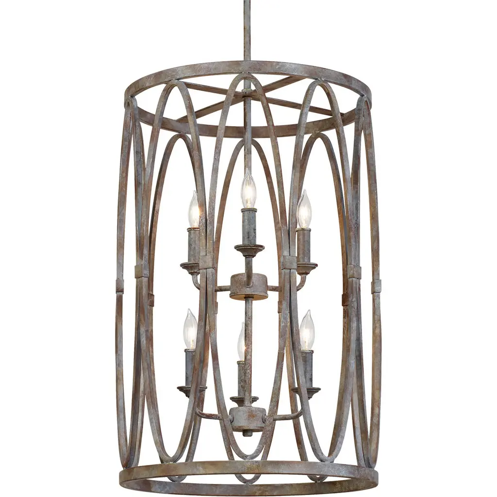 The Patrice six light multi-tier chandelier in deep abyss is the perfect way to achieve your desired fashion or functional needs in your home. Patrice showcases Feiss' Collection's unwavering commitment to robust construction and craftsmanship. Using our NEW Deep Abyss finish, Patrice is heavily textured and tactile, appearing as though it was pulled from a shipwreck. This humble design with its oval motifs is fitting for a wide range of decor. Patrice also features three outdoor fixtures with a rustic Dark Weathered Zinc finish. The outdoor chandeliers include glass candle covers to protect the lamping. All Patrice chandeliers are damp-rated for use in indoor and covered outdoor spaces.